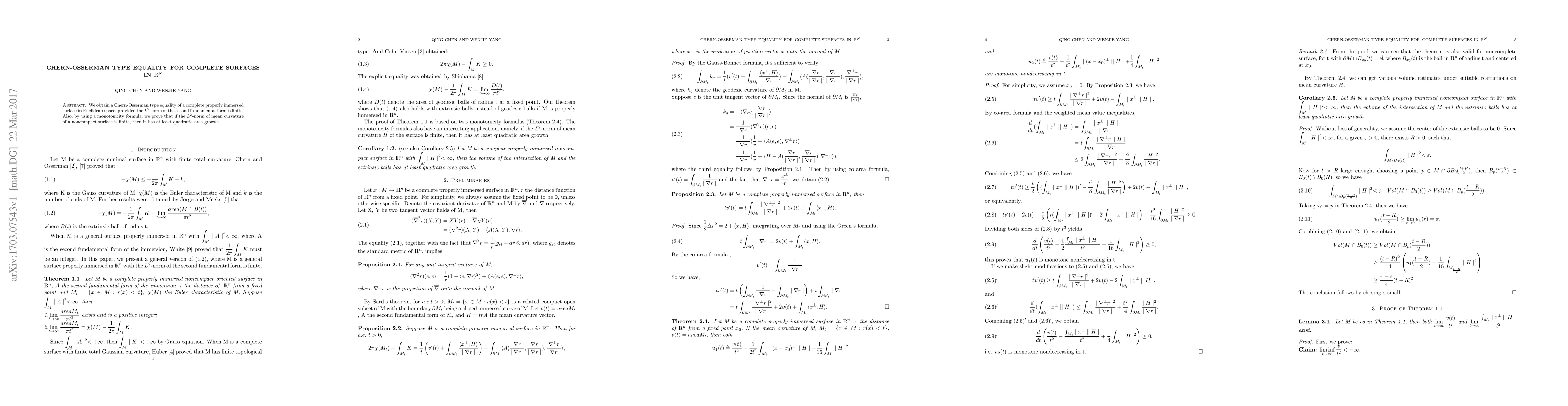 We obtain a Chern-Osserman type equality of a complete properly immersed surface in Euclidean space, provided the L^2-norm of the second fundamental form is finite. Also, by using a monotonicity formula, we prove that if the L^2-norm of mean curvature of a noncompact surface is finite, then it has at least quadratic area growth.