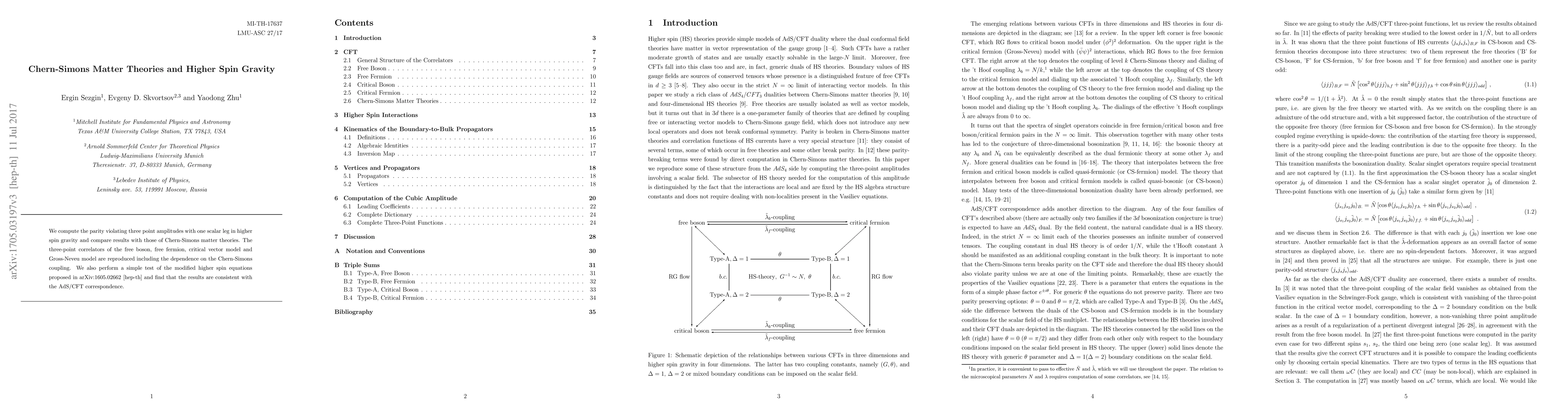 The paper computes parity violating three-point amplitudes in higher spin gravity and compares them to those from Chern-Simons matter theories, reproducing correlators from various models and verifying consistency with the AdS/CFT correspondence. The study also tests modified higher spin equations, finding results in alignment with theoretical predictions.