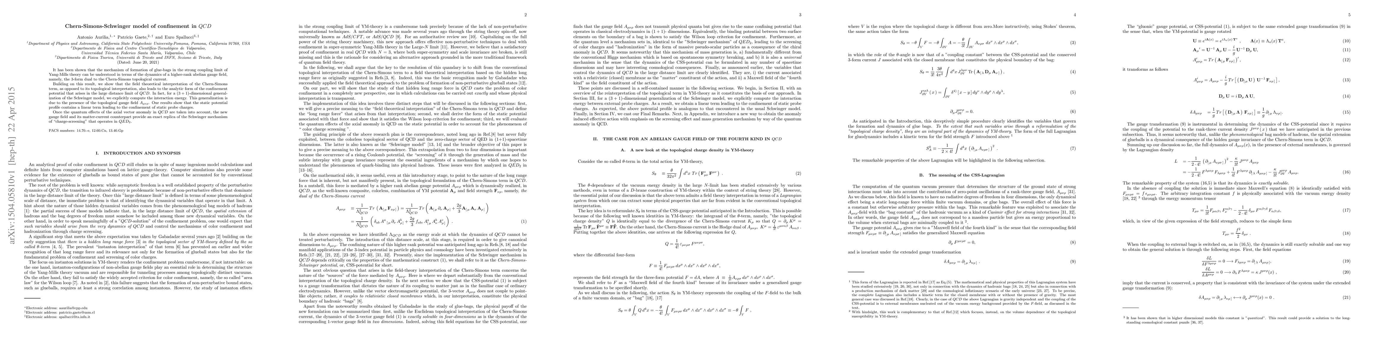 It has been shown that the mechanism of formation of glue-bags in the strong coupling limit of Yang-Mills theory can be understood in terms of the dynamics of a higher-rank abelian gauge field, namely, the 3-form dual to the Chern-Simons topological current. Building on this result, we show that the field theoretical interpretation of the Chern-Simons term, as opposed to its topological interpretation, also leads to the analytic form of the confinement potential that arises in the large distance limit of $QCD$. In fact, for a $(3+1)$-dimensional generalization of the Schwinger model, we explicitly compute the interaction energy. This generalization is due to the presence of the topological gauge field $A_{\mu\nu\rho}$. Our results show that the static potential profile contains a linear term leading to the confinement of static probe charges. Once the quantum effects of the axial vector anomaly in $QCD$ are taken into account, the new gauge field and its matter-current counterpart provide an exact replica of the Schwinger mechanism of "charge-screening" that operates in $QED_2$.