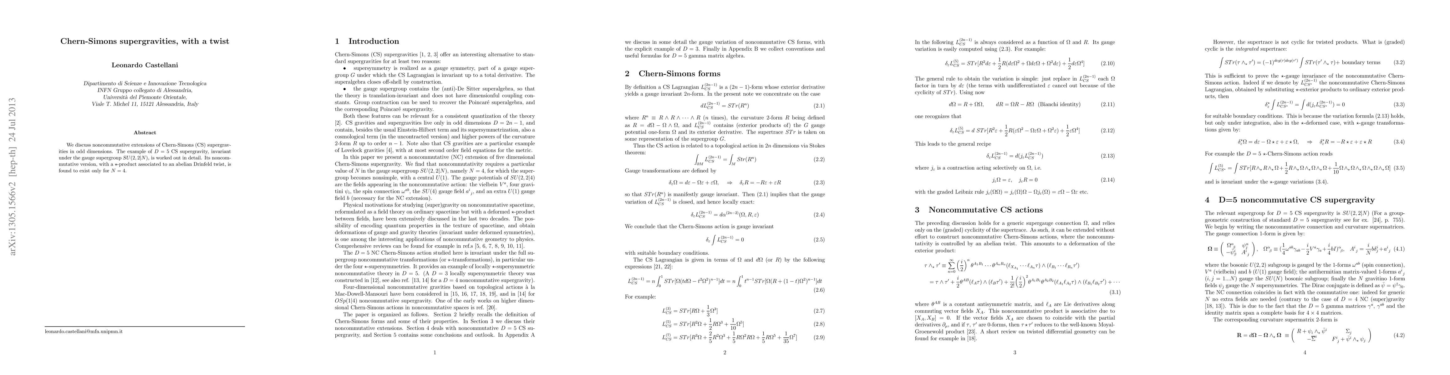 Two-line summary: This paper explores noncommutative extensions of Chern-Simons supergravities, focusing on the D=5 case invariant under SU(2,2|N), and finds that a noncommutative version exists only when N equals 4. The study highlights the unique constraints on the noncommutative structure in odd-dimensional supergravities.
