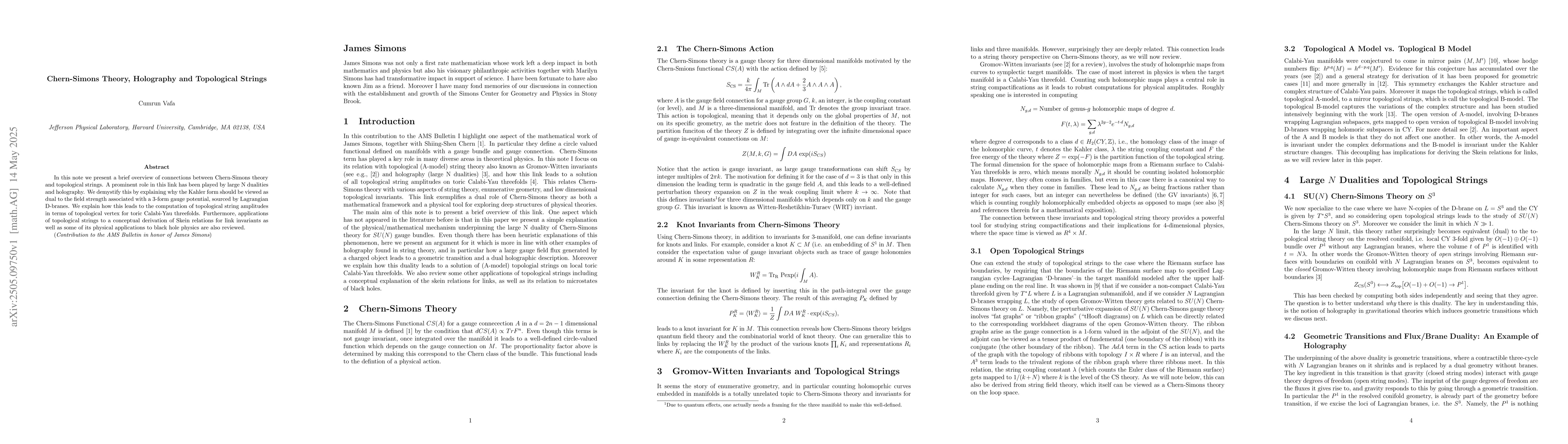 The paper provides an overview of connections between Chern-Simons theory and topological strings, emphasizing large N dualities and holography.