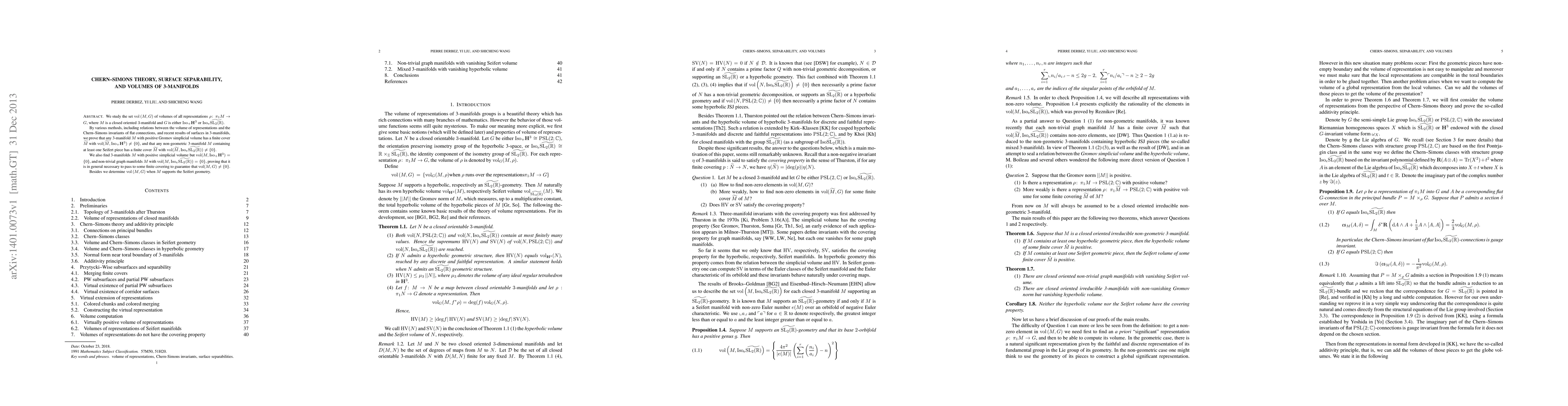 This paper explores the volumes of representations of the fundamental group of 3-manifolds into specific groups, using Chern-Simons theory and surface separability. It proves that certain 3-manifolds require finite covers to exhibit non-trivial volumes for specific representations, while also determining volumes for manifolds supporting Seifert geometry.