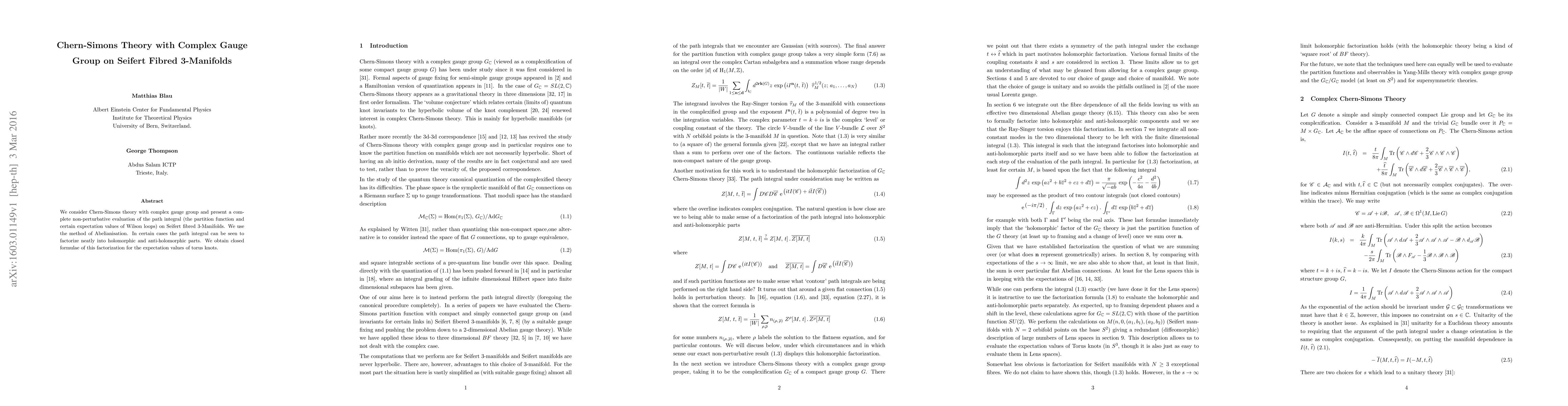 We consider Chern-Simons theory with complex gauge group and present a complete non-perturbative evaluation of the path integral (the partition function and certain expectation values of Wilson loops) on Seifert fibred 3-Manifolds. We use the method of Abelianisation. In certain cases the path integral can be seen to factorize neatly into holomorphic and anti-holomorphic parts. We obtain closed formulae of this factorization for the expectation values of torus knots.