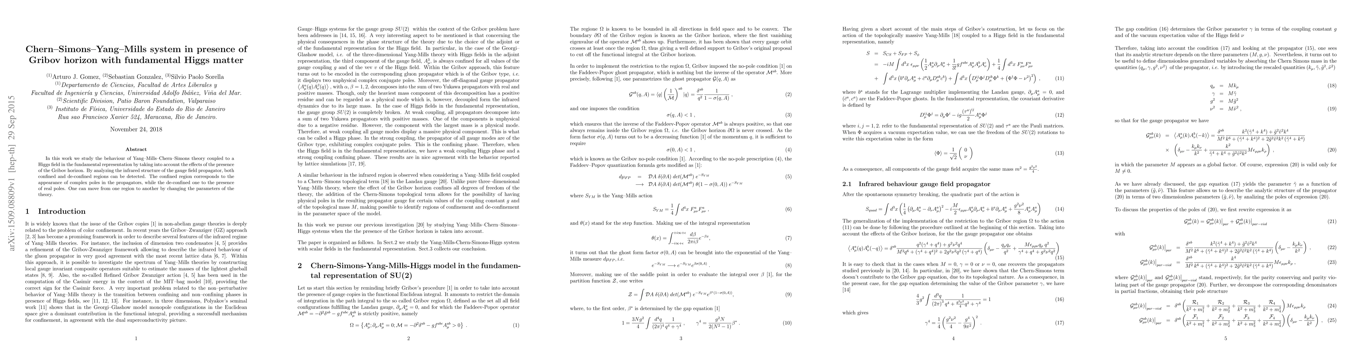 This paper investigates the Chern-Simons-Yang-Mills theory coupled with a fundamental Higgs field, focusing on the effects of the Gribov horizon. It reveals that the infrared structure of the gauge field propagator can indicate both confined and deconfined regions, with transitions between them achievable by varying theory parameters.