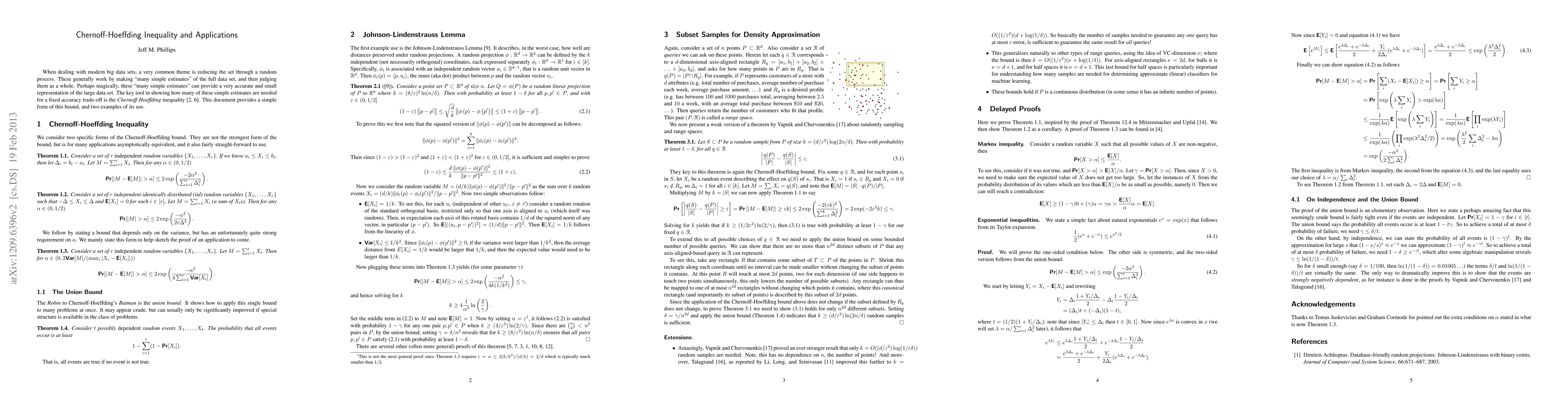 When dealing with modern big data sets, a very common theme is reducing the set through a random process. These generally work by making "many simple estimates" of the full data set, and then judging them as a whole. Perhaps magically, these "many simple estimates" can provide a very accurate and small representation of the large data set. The key tool in showing how many of these simple estimates are needed for a fixed accuracy trade-off is the Chernoff-Hoeffding inequality[Che52,Hoe63]. This document provides a simple form of this bound, and two examples of its use.