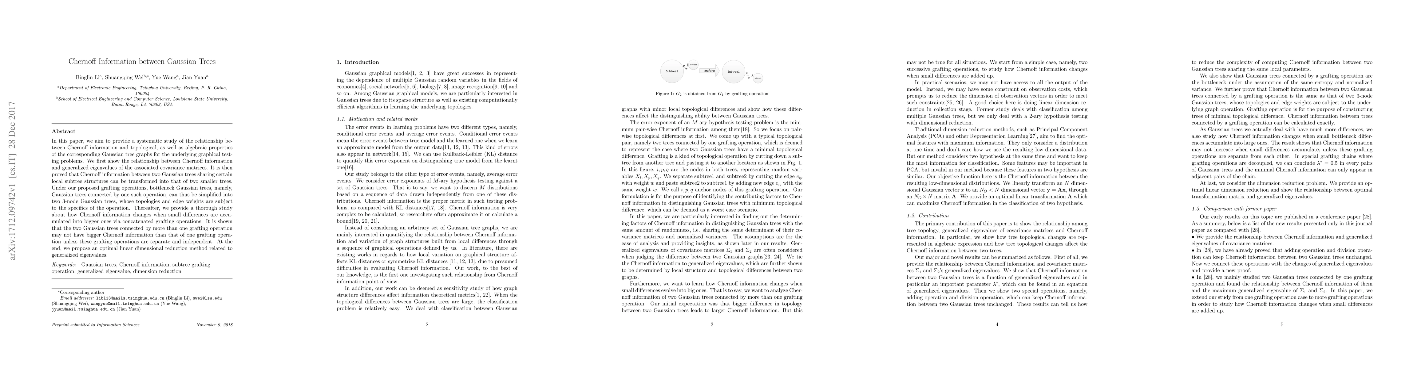The paper introduces a novel method for transforming Chernoff information between Gaussian trees and proposes an optimal linear dimensional reduction technique based on generalized eigenvalues.