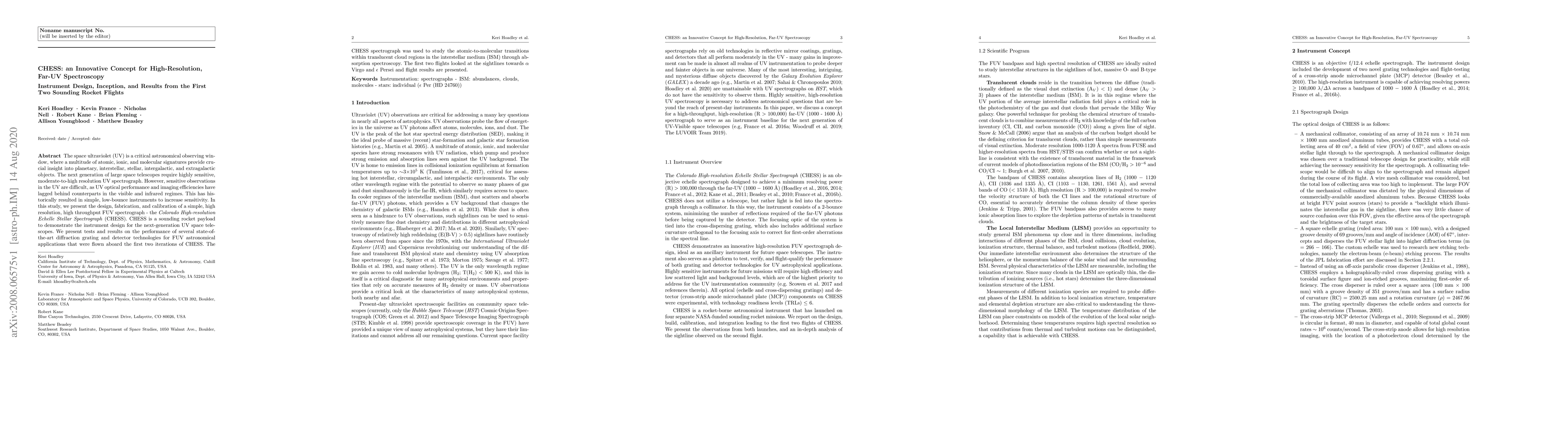 The CHESS spectrograph is designed for high-resolution, far-UV spectroscopy to study astronomical objects, addressing the lag in UV optical performance. Initial flights demonstrated the instrument's performance using state-of-the-art diffraction grating and detector technologies.