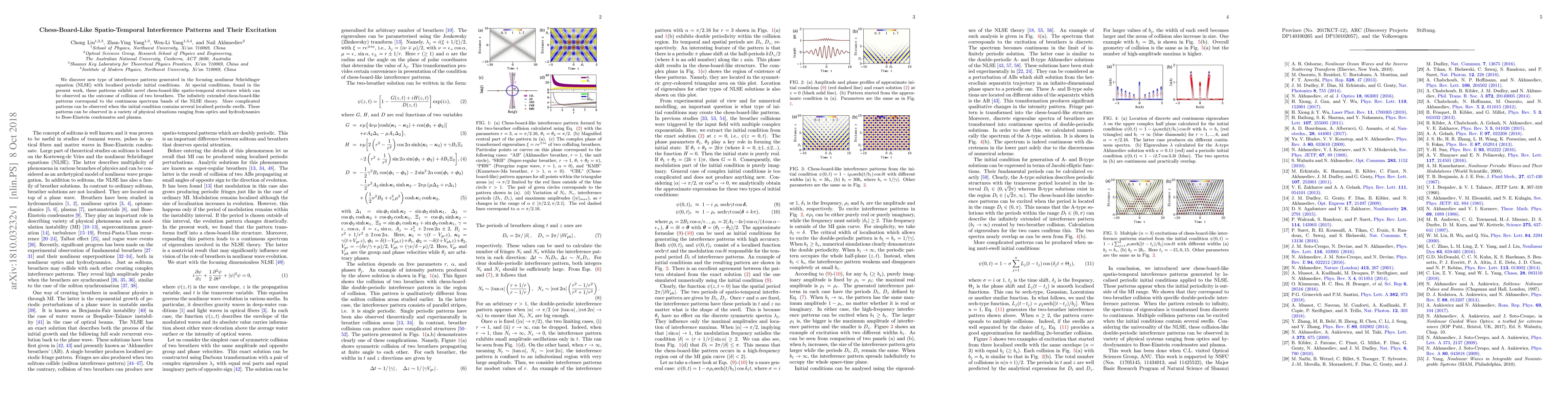 We discover new type of interference patterns generated in the focusing nonlinear Schr\"odinger equation (NLSE) with localised periodic initial conditions. At special conditions, found in the present work, these patterns exhibit novel chess-board-like spatio-temporal structures which can be observed as the outcome of collision of two breathers. The infinitely extended chess-board-like patterns correspond to the continuous spectrum bands of the NLSE theory. More complicated patterns can be observed when the initial condition contains several localised periodic swells. These patterns can be observed in a variety of physical situations ranging from optics and hydrodynamics to Bose-Einstein condensates and plasma.