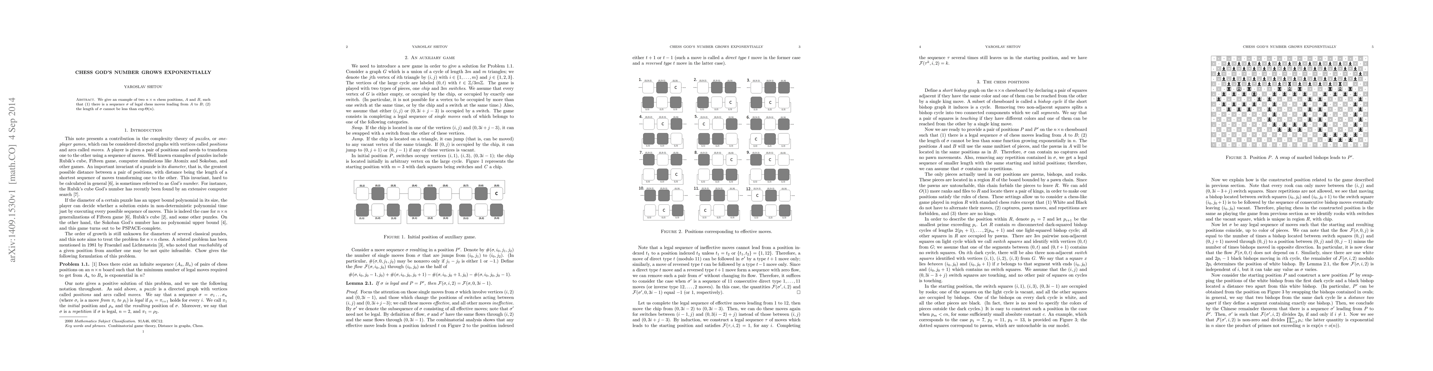 We give an example of two $n\times n$ chess positions, $A$ and $B$, such that (1) there is a sequence $\sigma$ of legal chess moves leading from $A$ to $B$; (2) the length of $\sigma$ cannot be less than $\exp \Theta(n)$.