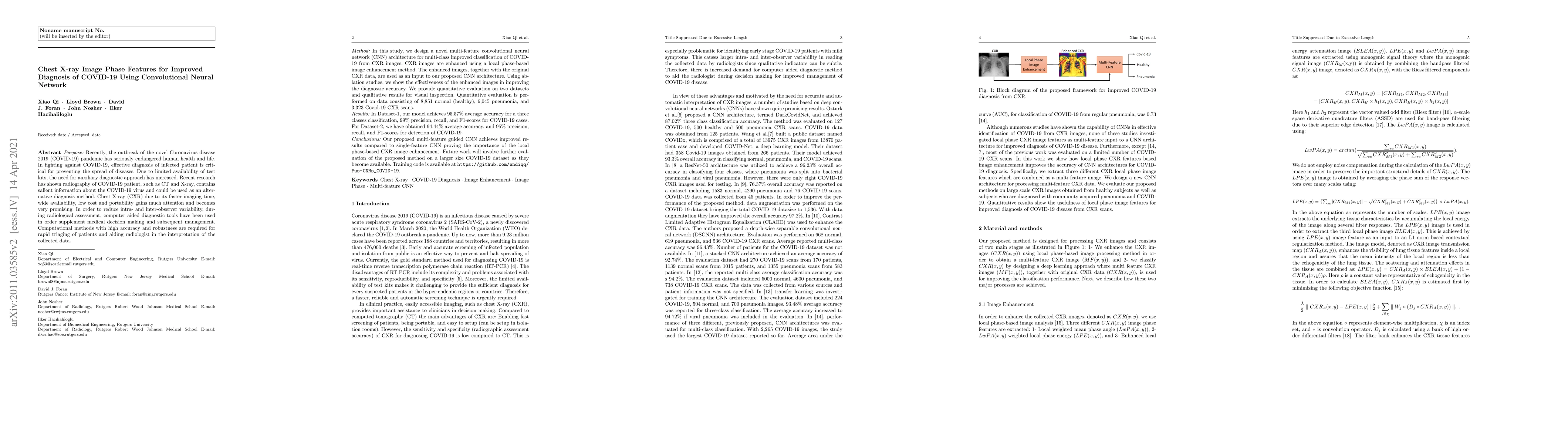 Recently, the outbreak of the novel Coronavirus disease 2019 (COVID-19) pandemic has seriously endangered human health and life. Due to limited availability of test kits, the need for auxiliary diagnostic approach has increased. Recent research has shown radiography of COVID-19 patient, such as CT and X-ray, contains salient information about the COVID-19 virus and could be used as an alternative diagnosis method. Chest X-ray (CXR) due to its faster imaging time, wide availability, low cost and portability gains much attention and becomes very promising. Computational methods with high accuracy and robustness are required for rapid triaging of patients and aiding radiologist in the interpretation of the collected data. In this study, we design a novel multi-feature convolutional neural network (CNN) architecture for multi-class improved classification of COVID-19 from CXR images. CXR images are enhanced using a local phase-based image enhancement method. The enhanced images, together with the original CXR data, are used as an input to our proposed CNN architecture. Using ablation studies, we show the effectiveness of the enhanced images in improving the diagnostic accuracy. We provide quantitative evaluation on two datasets and qualitative results for visual inspection. Quantitative evaluation is performed on data consisting of 8,851 normal (healthy), 6,045 pneumonia, and 3,323 Covid-19 CXR scans. In Dataset-1, our model achieves 95.57\% average accuracy for a three classes classification, 99\% precision, recall, and F1-scores for COVID-19 cases. For Dataset-2, we have obtained 94.44\% average accuracy, and 95\% precision, recall, and F1-scores for detection of COVID-19. Our proposed multi-feature guided CNN achieves improved results compared to single-feature CNN proving the importance of the local phase-based CXR image enhancement (https://github.com/endiqq/Fus-CNNs_COVID-19).