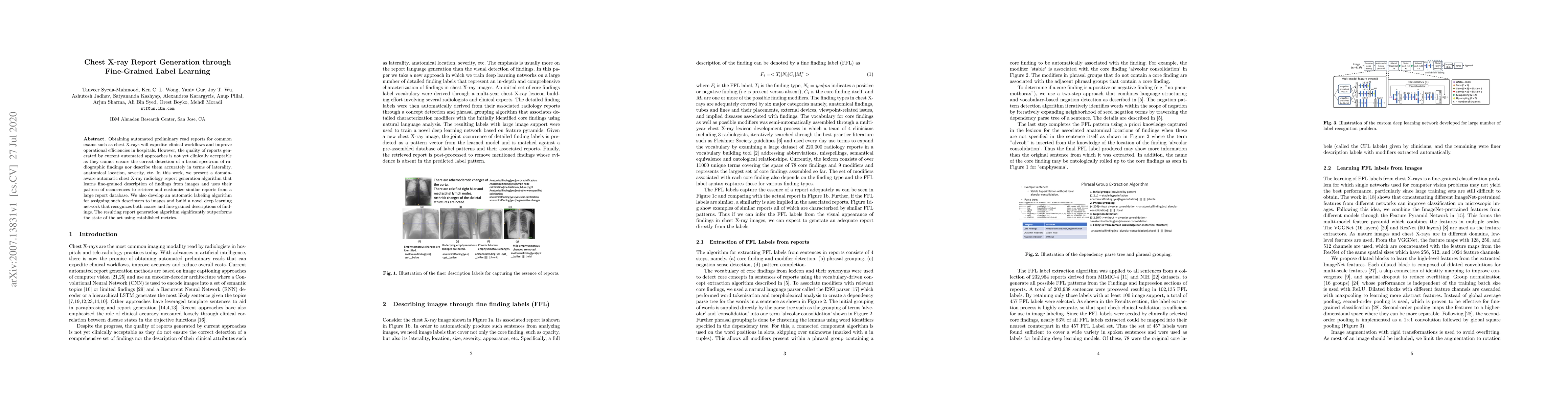 This paper introduces a novel algorithm for generating detailed chest X-ray reports by learning fine-grained descriptions of radiographic findings and customizing reports from a large database. The method also includes an automatic labeling system and a deep learning network for recognizing both coarse and fine-grained descriptions, outperforming existing approaches.