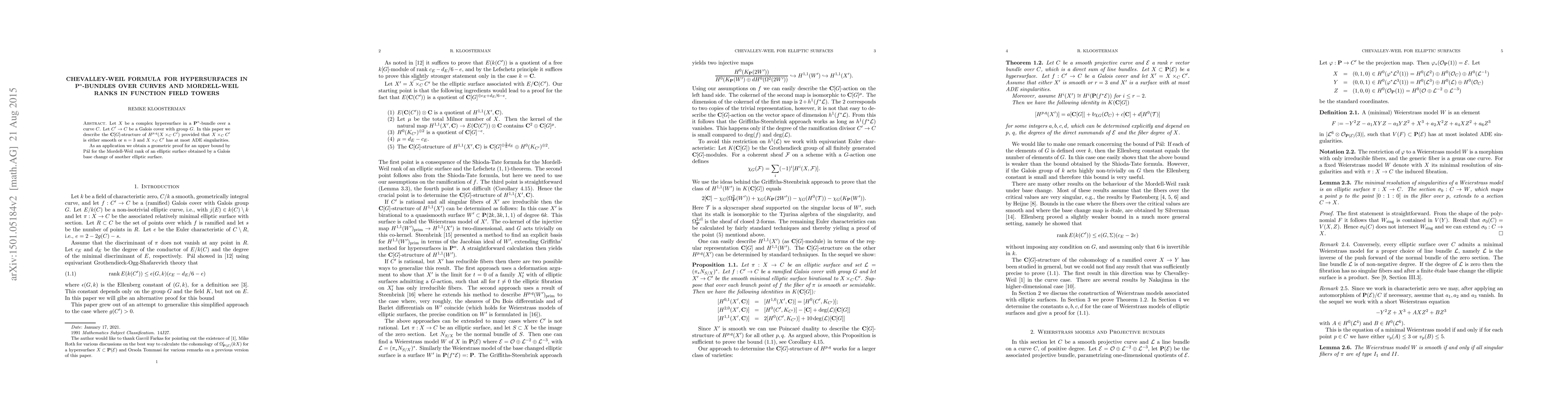 This paper investigates the Chevalley-Weil formula for complex hypersurfaces in $\mathbf{P}^n$-bundles over curves, focusing on the $\mathbf{C}[G]$-structure of their cohomology under Galois covers. It provides an upper bound for Mordell-Weil ranks in function field towers, showing that Pal's bound is weaker than the Shioda-Tate formula when the Galois group acts trivially.