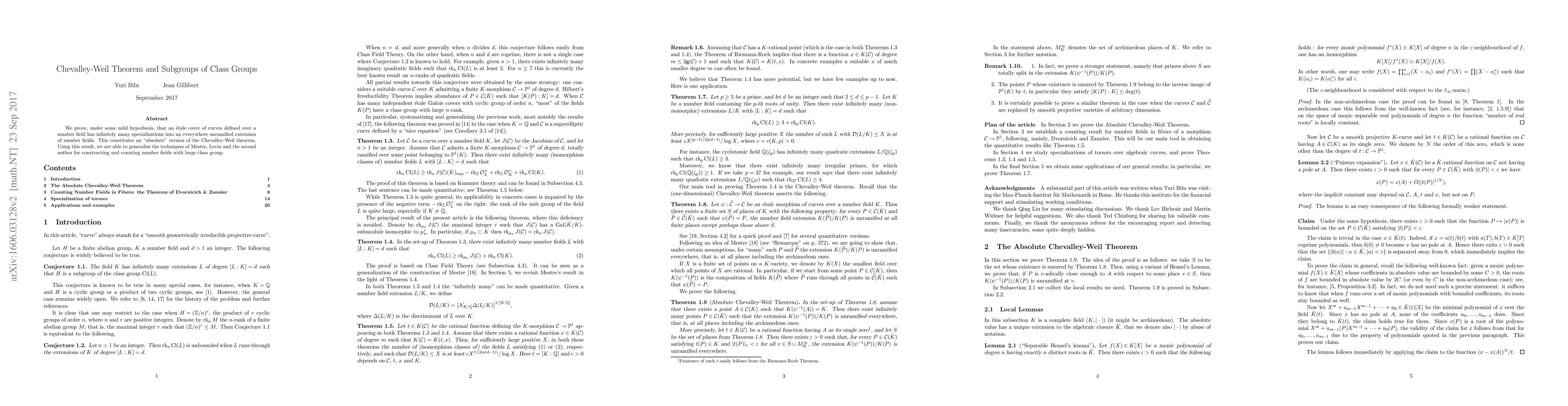 This paper proves an "absolute" version of the Chevalley-Weil theorem, showing that étale covers of curves over number fields have infinitely many specializations into unramified extensions. It also extends methods for constructing and counting number fields with large class groups.