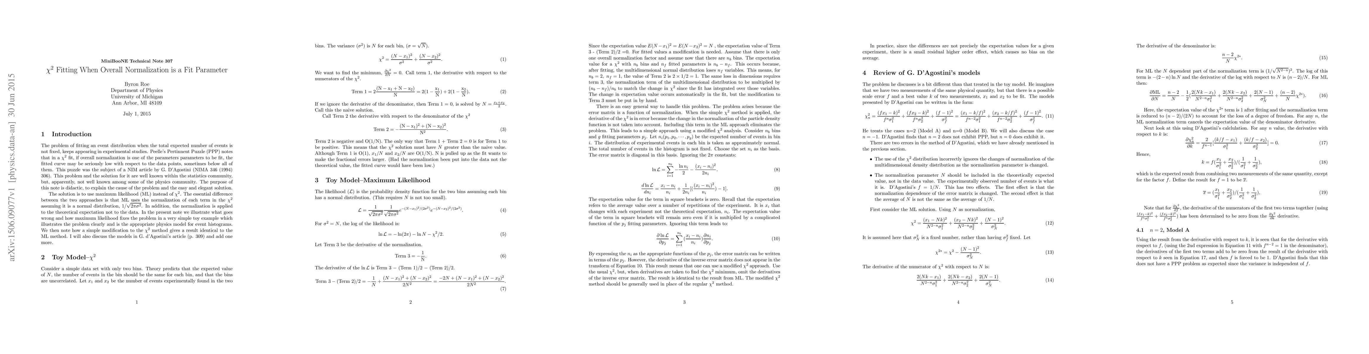 The problem of fitting an event distribution when the total expected number of events is not fixed, keeps appearing in experimental studies. In a chi-square fit, if overall normalization is one of the parameters parameters to be fit, the fitted curve may be seriously low with respect to the data points, sometimes below all of them. This problem and the solution for it are well known within the statistics community, but, apparently, not well known among some of the physics community. The purpose of this note is didactic, to explain the cause of the problem and the easy and elegant solution. The solution is to use maximum likelihood instead of chi-square. The essential difference between the two approaches is that maximum likelihood uses the normalization of each term in the chi-square assuming it is a normal distribution, 1/sqrt(2 pi sigma-square). In addition, the normalization is applied to the theoretical expectation not to the data. In the present note we illustrate what goes wrong and how maximum likelihood fixes the problem in a very simple toy example which illustrates the problem clearly and is the appropriate physics model for event histograms. We then note how a simple modification to the chi-square method gives a result identical to the maximum likelihood method.