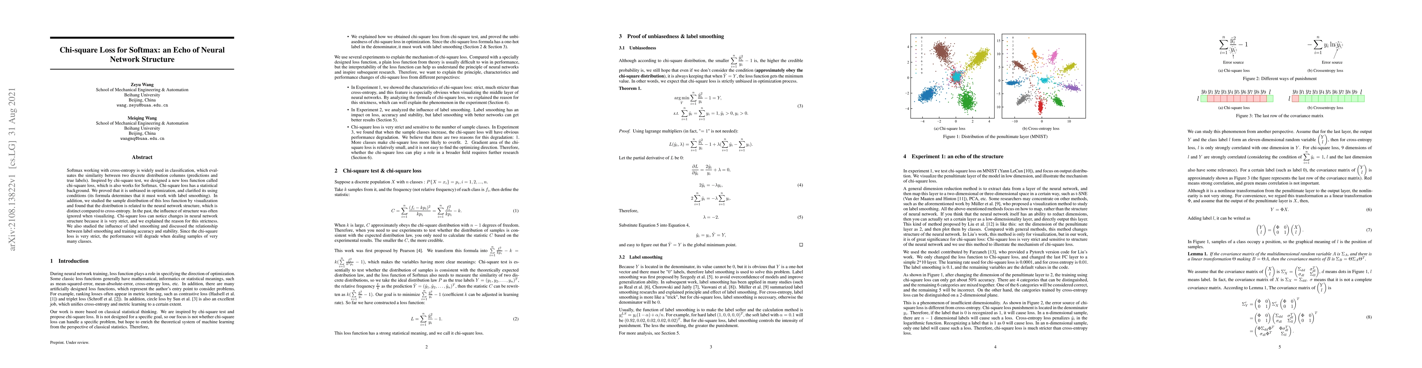 This paper introduces a chi-square loss function for softmax, demonstrating its statistical properties and unbiased optimization. It highlights that chi-square loss reveals neural network structure nuances, unlike cross-entropy, and discusses the impact of label smoothing on training accuracy and stability.