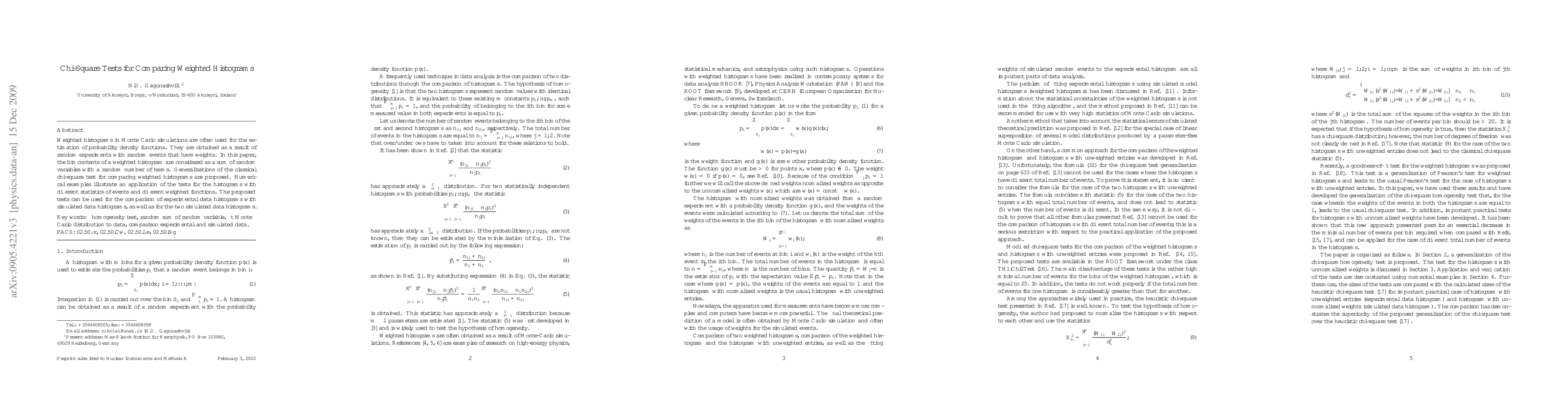 This paper proposes generalized chi-square tests for comparing weighted histograms derived from Monte Carlo simulations, treating bin contents as sums of random variables. The tests are demonstrated through numerical examples to effectively compare experimental and simulated data histograms.