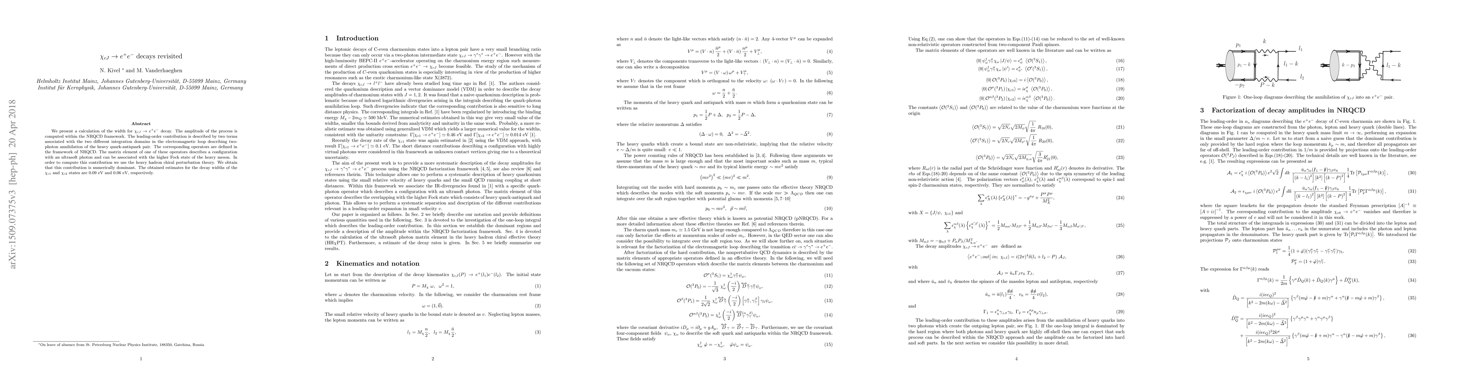 This paper revisits the calculation of the decay width for $\chi_{cJ}\rightarrow e^{+}e^{-}$ within the NRQCD framework, identifying two leading-order contributions from different integration domains. The dominant contribution is found to arise from a higher Fock state involving an ultrasoft photon, leading to estimated decay widths of $0.09$ eV for $\chi_{c1}$ and $0.06$ eV for $\chi_{c2}$.