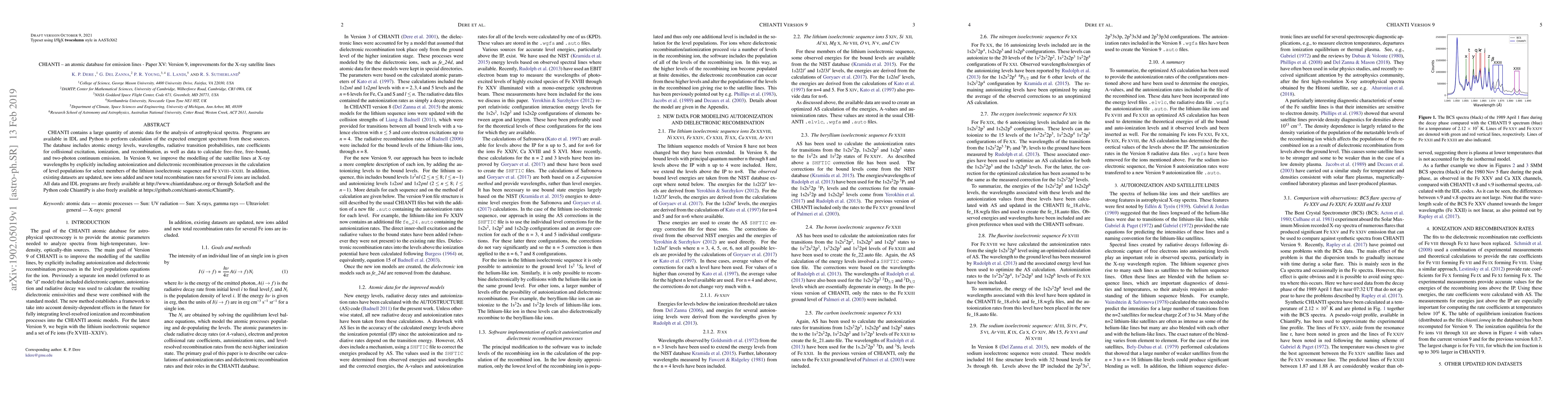 CHIANTI Version 9 enhances the modelling of X-ray satellite lines by incorporating autoionization and dielectronic recombination, updating datasets, and adding new ions and recombination rates. The database and associated tools remain freely accessible for astrophysical spectrum analysis.