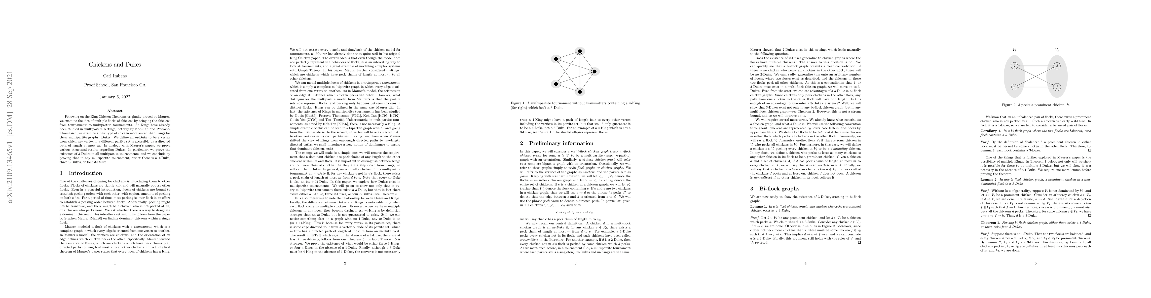 Following on the King Chicken Theorems originally proved by Maurer, we examine the idea of multiple flocks of chickens by bringing the chickens from tournaments to multipartite tournaments. As Kings have already been studied in multipartite settings, notably by Koh-Tan and Petrovic-Thomassen, we examine a new type of chicken more suited than Kings for these multipartite graphs: Dukes. We define an M-Duke to be a vertex from which any vertex in a different partite set is accessible by a directed path of length at most M. In analogy with Maurer's paper, we prove various structural results regarding Dukes. In particular, we prove the existence of 3-Dukes in all multipartite tournaments, and we conclude by proving that in any multipartite tournament, either there is a 1-Duke, three 2-Dukes, or four 3-Dukes.