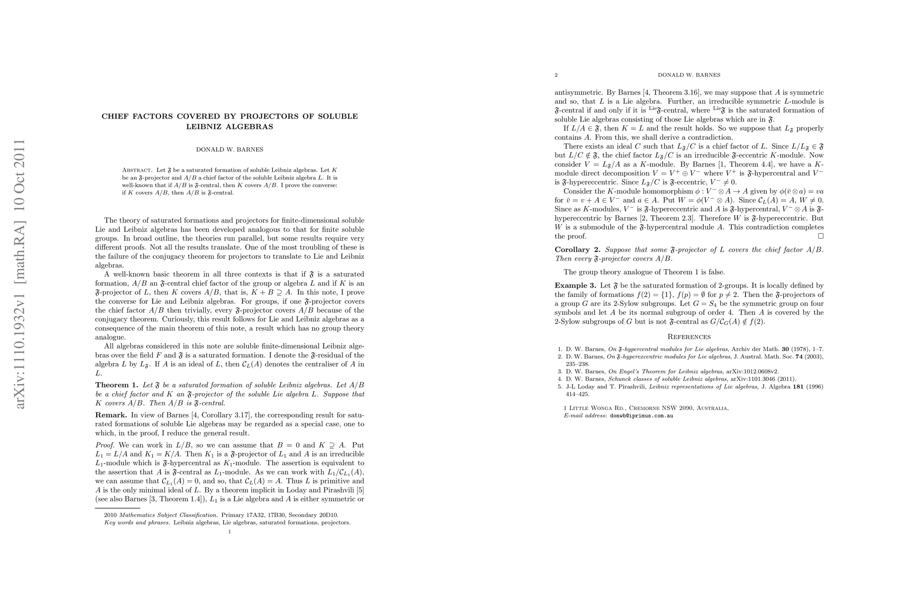 Let F be a saturated formation of soluble Leibniz algebras. Let K be an F-projector and A/B a chief factor of the soluble Leibniz algebra L. It is well-known that if A/B is F-central, then K covers A/B. I prove the converse: if K covers A/B, then A/B is F-central.