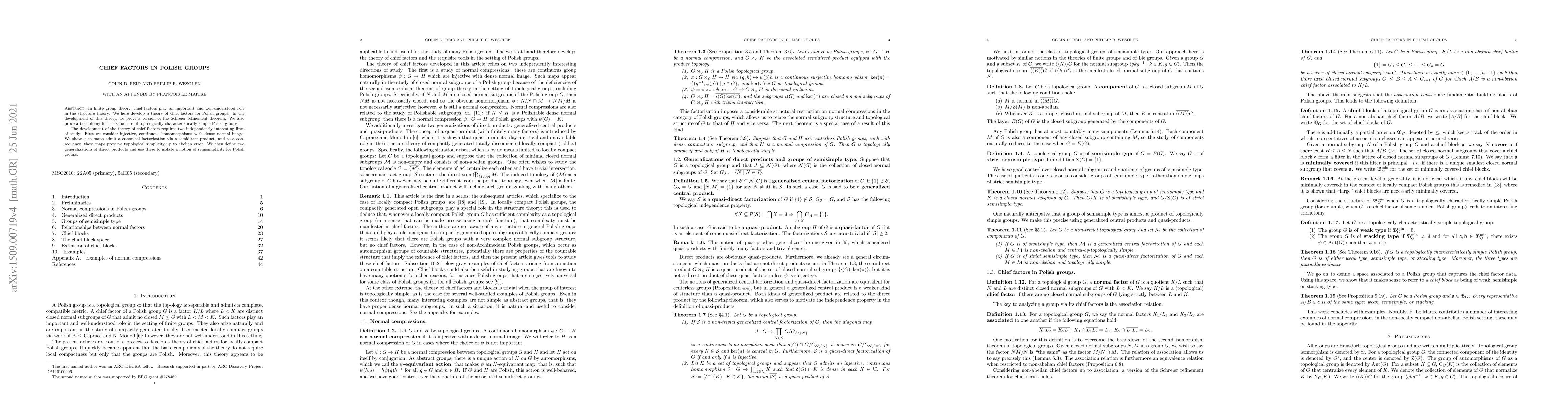 This paper develops a theory of chief factors for Polish groups, proving a Schreier refinement theorem and a trichotomy for topologically characteristically simple Polish groups. It also explores injective, continuous homomorphisms with dense normal images, showing they factor via semidirect products and preserve topological simplicity.