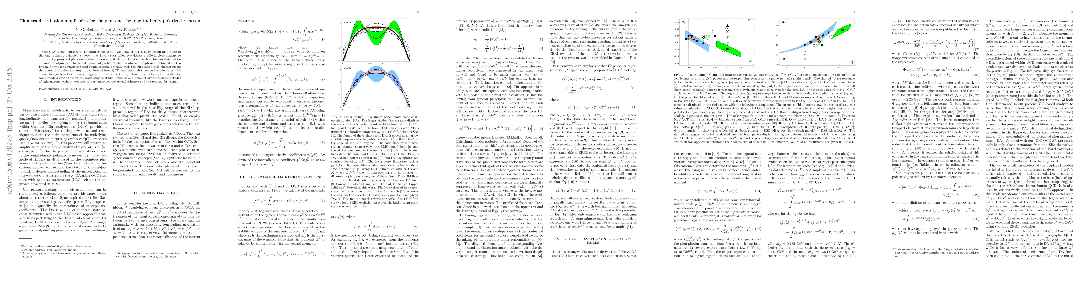 This paper uses QCD sum rules with nonlocal condensates to propose a chimera distribution amplitude for the longitudinally polarized ρ-meson, which combines features of both unimodal and bimodal profiles. It suggests that pattern formation from coupled oscillators can unify the study of distribution amplitudes for light mesons.