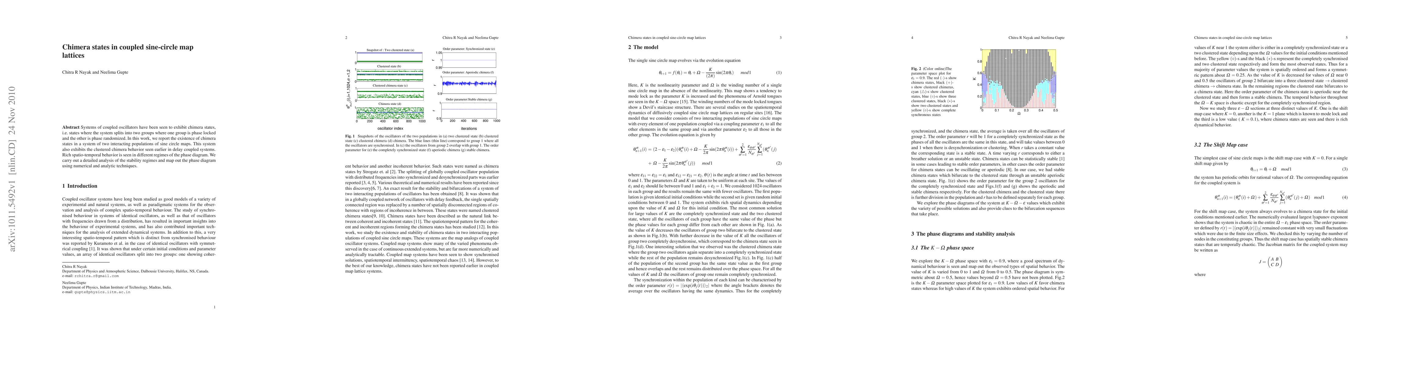 This paper investigates chimera states in coupled sine-circle map lattices, revealing the coexistence of synchronized and desynchronized regions. The study maps out the phase diagram and analyzes stability regimes, uncovering rich spatio-temporal dynamics and clustered chimera behavior.
