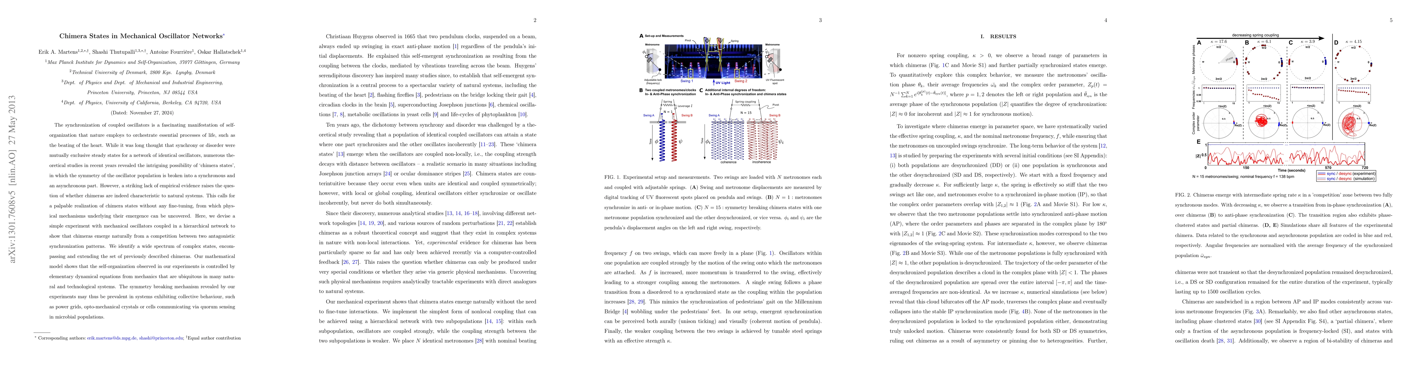 Researchers demonstrate the existence of chimera states in mechanical oscillator networks, where a network of oscillators can exhibit both synchronized and asynchronous behavior without fine-tuning, revealing a universal mechanism for self-organization in complex systems.