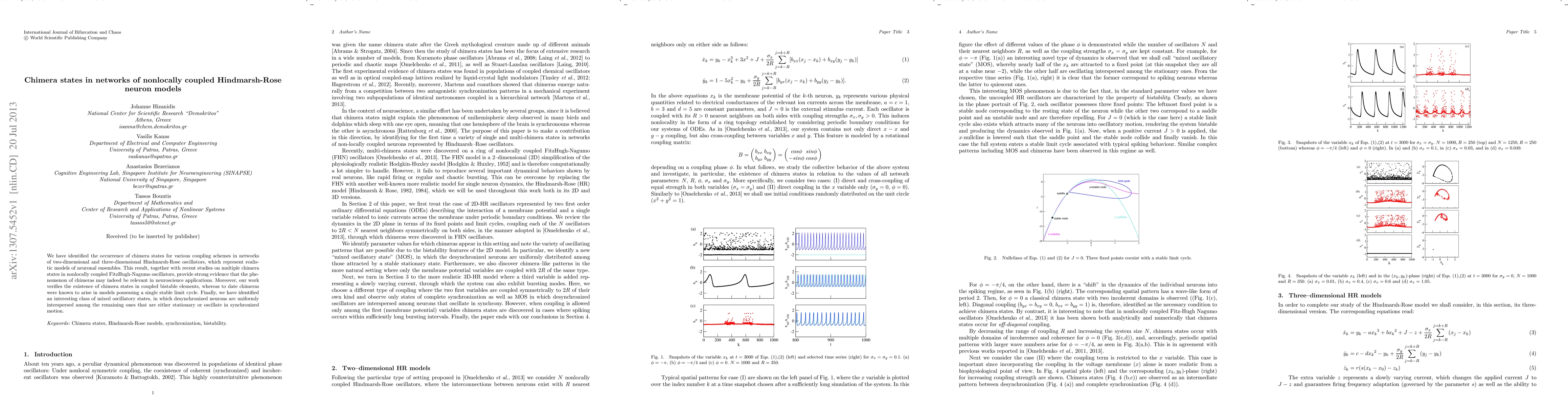 This study identifies chimera states in networks of Hindmarsh-Rose neuron models, demonstrating their relevance in neuroscience. It also reveals mixed oscillatory states, extending the occurrence of chimeras to coupled bistable elements beyond single stable limit cycles.