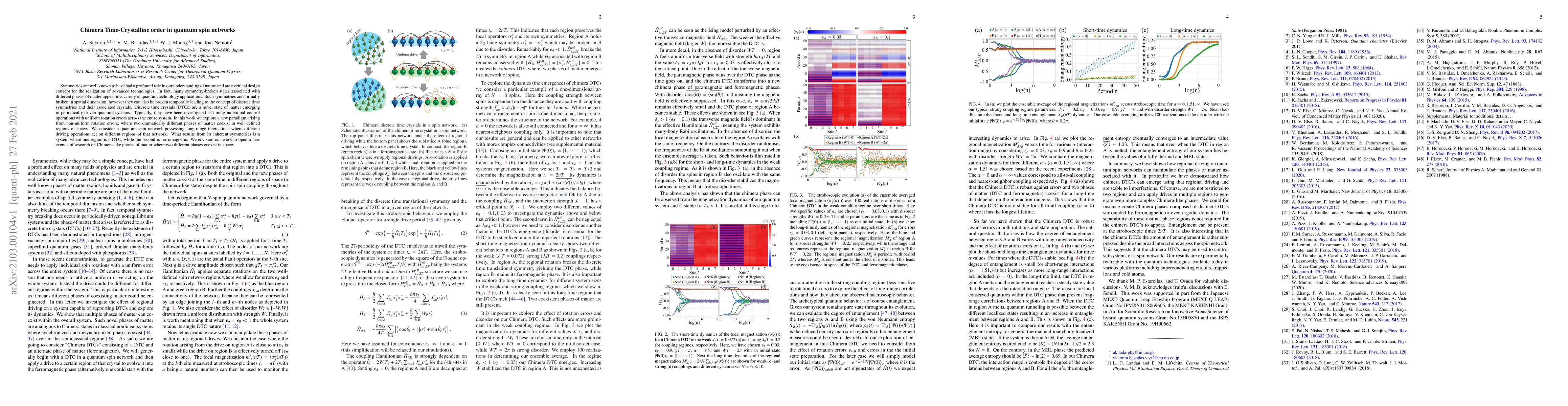 Symmetries are well known to have had a profound role in our understanding of nature and are a critical design concept for the realization of advanced technologies. In fact, many symmetry-broken states associated with different phases of matter appear in a variety of quantum technology applications. Such symmetries are normally broken in spatial dimension, however they can also be broken temporally leading to the concept of discrete time symmetries and their associated crystals. Discrete time crystals (DTCs) are a novel state of matter emerging in periodically-driven quantum systems. Typically, they have been investigated assuming individual control operations with uniform rotation errors across the entire system. In this work we explore a new paradigm arising from non-uniform rotation errors, where two dramatically different phases of matter coexist in well defined regions of space. We consider a quantum spin network possessing long-range interactions where different driving operations act on different regions of that network. What results from its inherent symmetries is a system where one region is a DTC, while the second is ferromagnetic. We envision our work to open a new avenue of research on Chimera-like phases of matter where two different phases coexist in space.