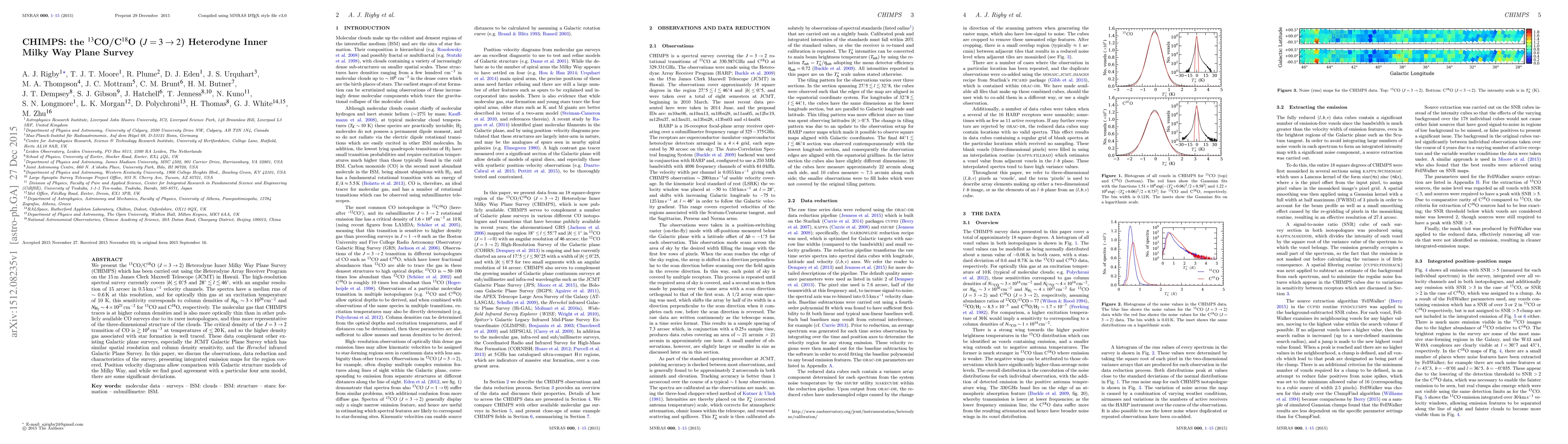 We present the $^{13}$CO/C$^{18}$O (J=3-2) Heterodyne Inner Milky Way Plane Survey (CHIMPS) which has been carried out using the Heterodyne Array Receiver Program on the 15 m James Clerk Maxwell Telescope (JCMT) in Hawaii. The high-resolution spectral survey currently covers |b| < 0.5 deg and 28 < l < 46 deg, with an angular resolution of 15 arcsec in 0.5 km/s velocity channels. The spectra have a median rms of $\sim$ 0.6 K at this resolution, and for optically thin gas at an excitation temperature of 10 K, this sensitivity corresponds to column densities of $N_{\mathrm{H}_{2}} \sim 3 \times 10^{20}\,$cm$^{-2}$ and $N_{\mathrm{H}_{2}} \sim 4 \times 10^{21}\,$cm$^{-2}$ for $^{13}$CO and C$^{18}$O, respectively. The molecular gas that CHIMPS traces is at higher column densities and is also more optically thin than in other publicly available CO surveys due to its rarer isotopologues, and thus more representative of the three-dimensional structure of the clouds. The critical density of the J=3-2 transition of CO is $\gtrsim 10^{4}$ cm$^{-3}$ at temperatures of $\leq 20$ K, and so the higher density gas associated with star formation is well traced. These data complement other existing Galactic plane surveys, especially the JCMT Galactic Plane Survey which has similar spatial resolution and column density sensitivity, and the Herschel infrared Galactic Plane Survey. In this paper, we discuss the observations, data reduction and characteristics of the survey, presenting integrated emission maps for the region covered. Position-velocity diagrams allow comparison with Galactic structure models of the Milky Way, and while we find good agreement with a particular four arm model, there are some significant deviations.