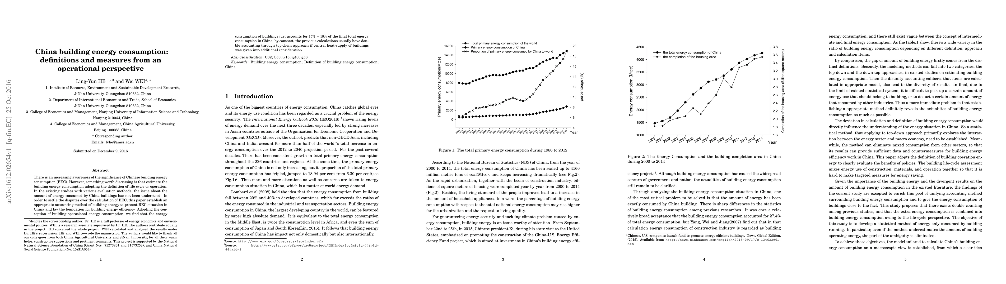 This paper establishes an operational perspective to accurately measure China's building energy consumption (BEC), finding it accounts for 15%-16% of total energy use, contrasting with previous double-counted estimates due to central heat-supply inclusion.