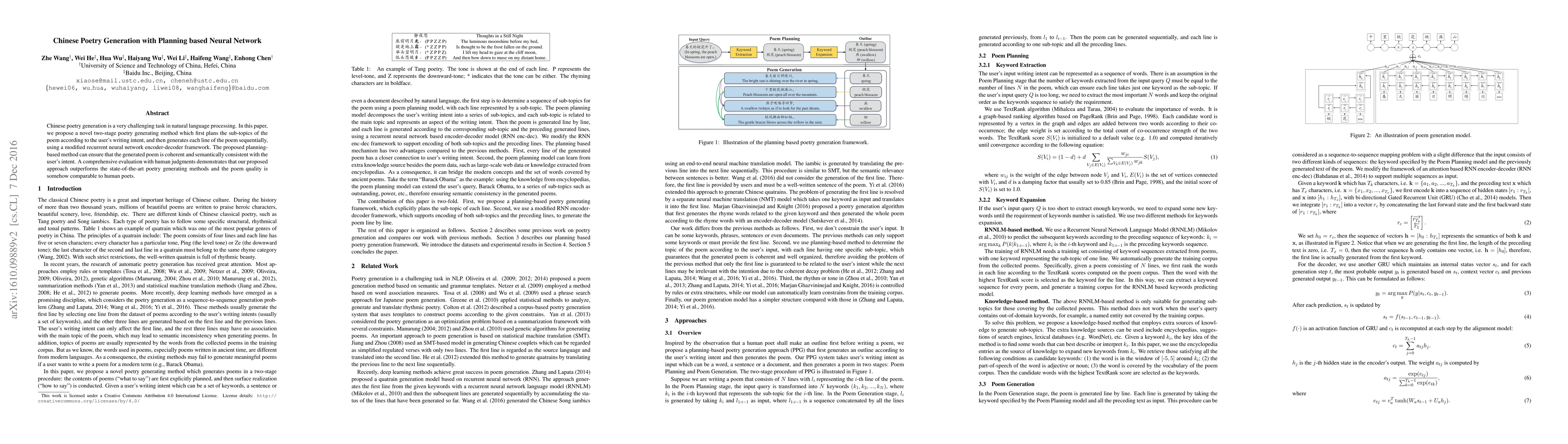 This paper proposes a two-stage neural network for generating Chinese poetry, first planning sub-topics based on user intent, then sequentially generating each line. Evaluations show it outperforms existing methods and produces poems comparable to human poets.