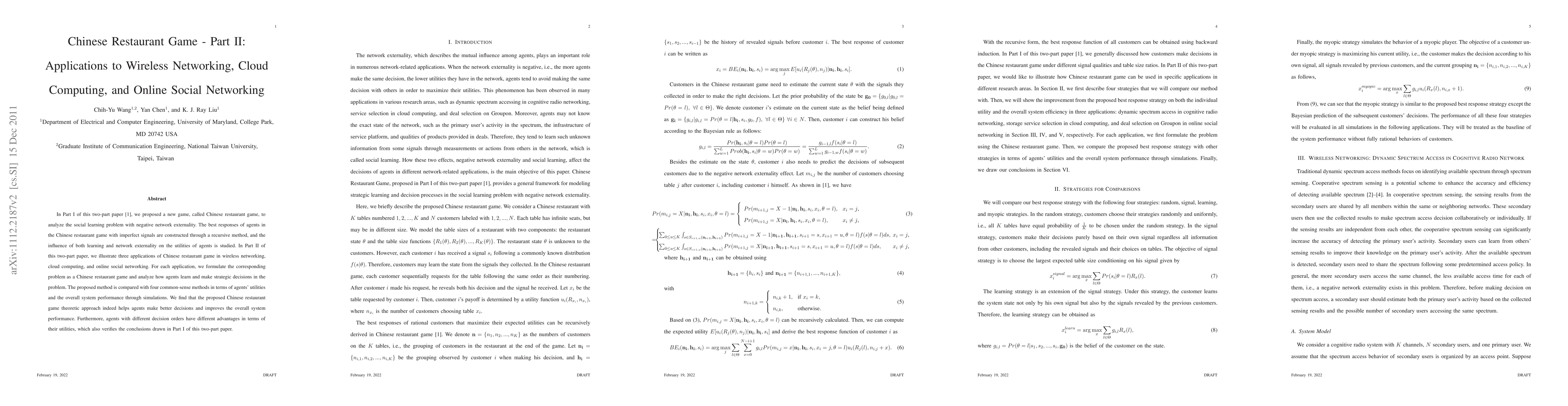 This paper extends the Chinese restaurant game from Part I to applications in wireless networking, cloud computing, and online social networking, demonstrating how agents make better decisions and improve system performance through simulations. The proposed method outperforms common-sense approaches, confirming the benefits of strategic learning and network externality.