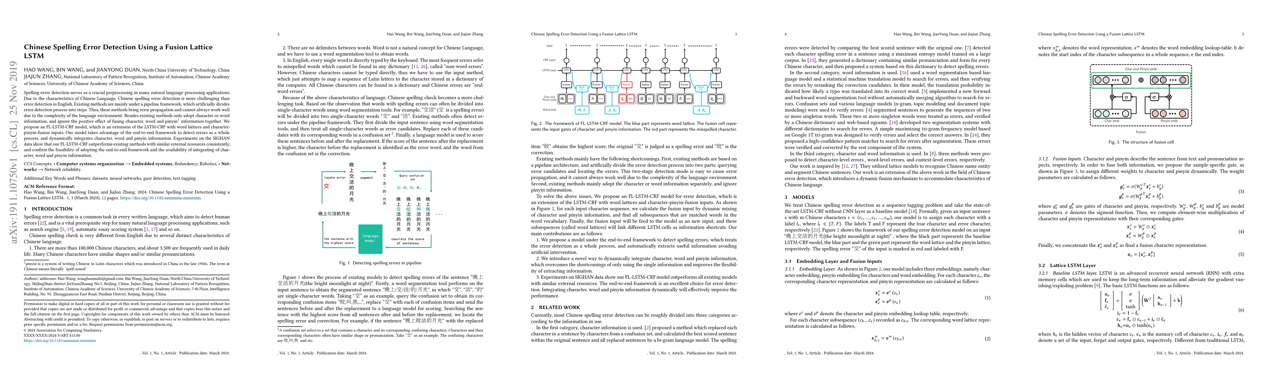 Researchers developed a new approach to detecting spelling errors in Chinese text, using a fusion lattice LSTM model that combines character, word, and pinyin information for accurate error detection. The method outperformed existing methods on the SIGHAN data set.