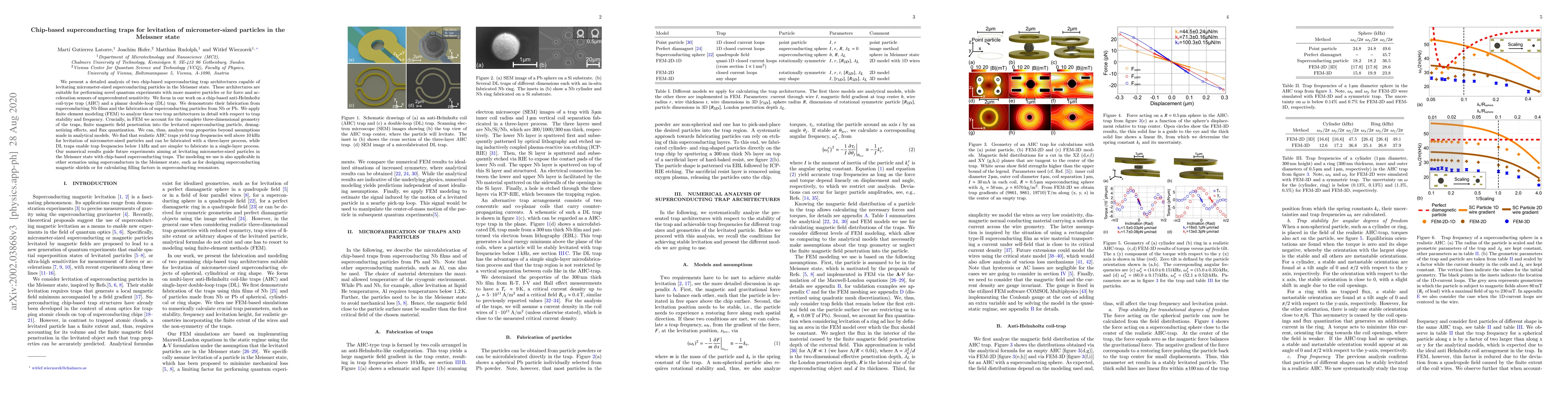 This paper presents two chip-based superconducting trap architectures—a chip-based anti-Helmholtz coil-type trap (AHC) and a planar double-loop (DLP) trap—for levitating micrometer-sized superconducting particles in the Meissner state. Finite element modeling reveals that AHC traps achieve high trap frequencies above 10kHz for micrometer-sized particles, while DLP traps are simpler but yield lower frequencies below 1kHz.