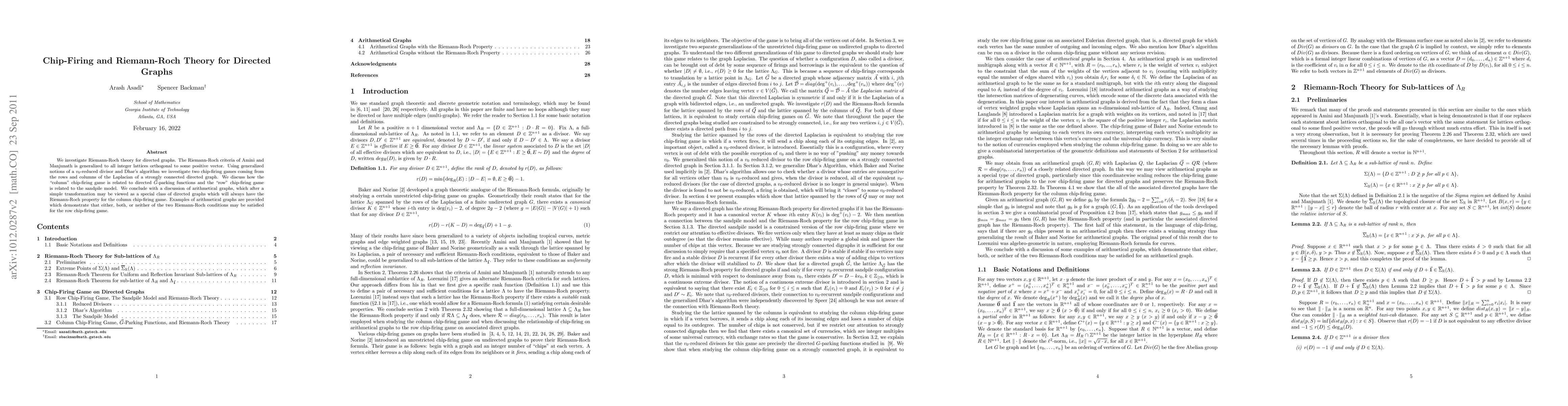 This paper generalizes Riemann-Roch theory for directed graphs, applying it to chip-firing games derived from the Laplacian's rows and columns. It connects the column chip-firing game to directed $\vec{G}$-parking functions and the row game to the sandpile model, while exploring arithmetical graphs' special properties.