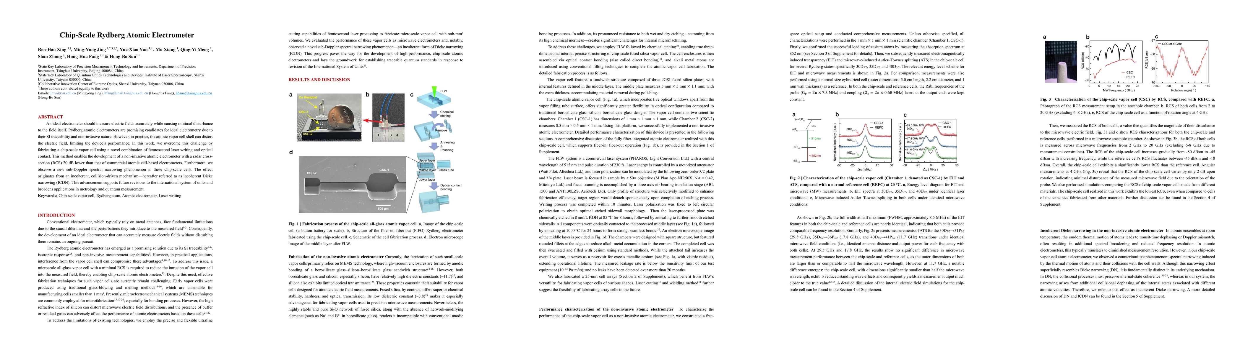 An ideal electrometer should measure electric fields accurately while causing minimal disturbance to the field itself. Rydberg atomic electrometers are promising candidates for ideal electrometry due to their SI traceability and non-invasive nature. However, in practice, the atomic vapor cell shell can distort the electric field, limiting the device's performance. In this work, we overcome this challenge by fabricating a chip-scale vapor cell using a novel combination of femtosecond laser writing and optical contact. This method enables the development of a non-invasive atomic electrometer with a radar cross-section (RCS) 20 dB lower than that of commercial atomic cell-based electrometers. Furthermore, we observe a new sub-Doppler spectral narrowing phenomenon in these chip-scale cells. The effect originates from an incoherent, collision-driven mechanism--hereafter referred to as incoherent Dicke narrowing (ICDN). This advancement supports future revisions to the international system of units and broadens applications in metrology and quantum measurement.
