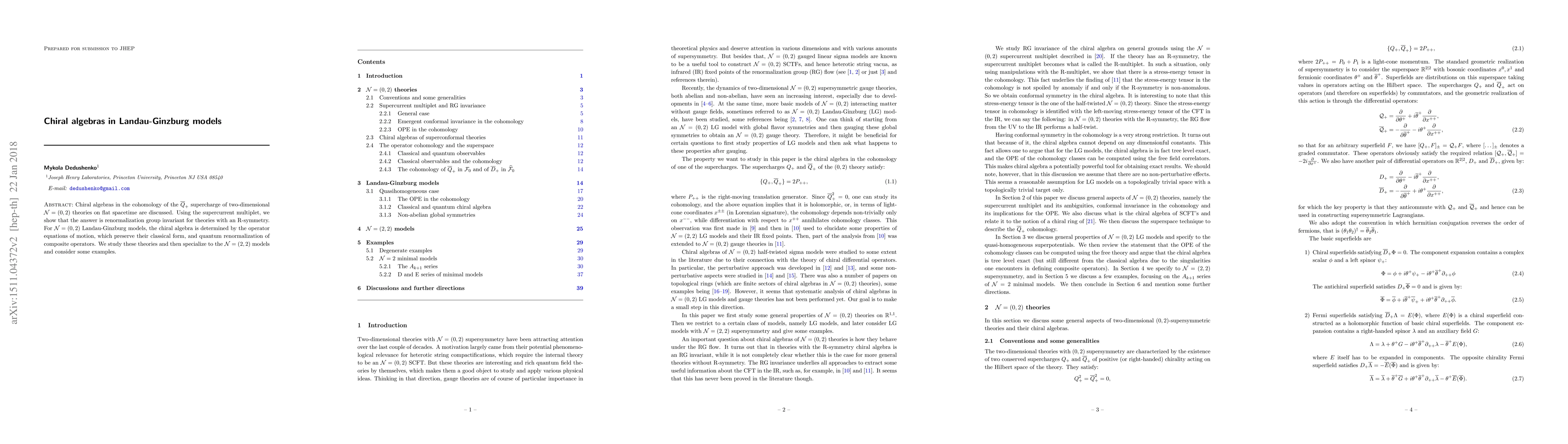 Chiral algebras in the cohomology of the $\overline{Q}_+$ supercharge of two-dimensional $\mathcal{N}=(0,2)$ theories on flat spacetime are discussed. Using the supercurrent multiplet, we show that the answer is renormalization group invariant for theories with an R-symmetry. For $\mathcal{N}=(0,2)$ Landau-Ginzburg models, the chiral algebra is determined by the operator equations of motion, which preserve their classical form, and quantum renormalization of composite operators. We study these theories and then specialize to the $\mathcal{N}=(2,2)$ models and consider some examples.