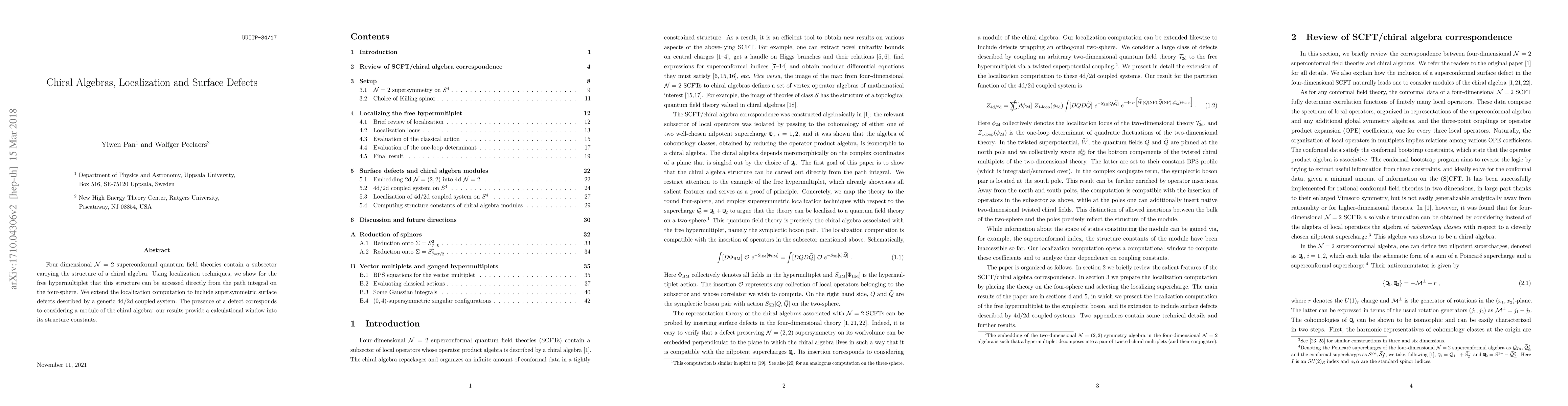 Four-dimensional N = 2 superconformal quantum field theories contain a subsector carrying the structure of a chiral algebra. Using localization techniques, we show for the free hypermultiplet that this structure can be accessed directly from the path integral on the four-sphere. We extend the localization computation to include supersymmetric surface defects described by a generic 4d/2d coupled system. The presence of a defect corresponds to considering a module of the chiral algebra: our results provide a calculational window into its structure constants.