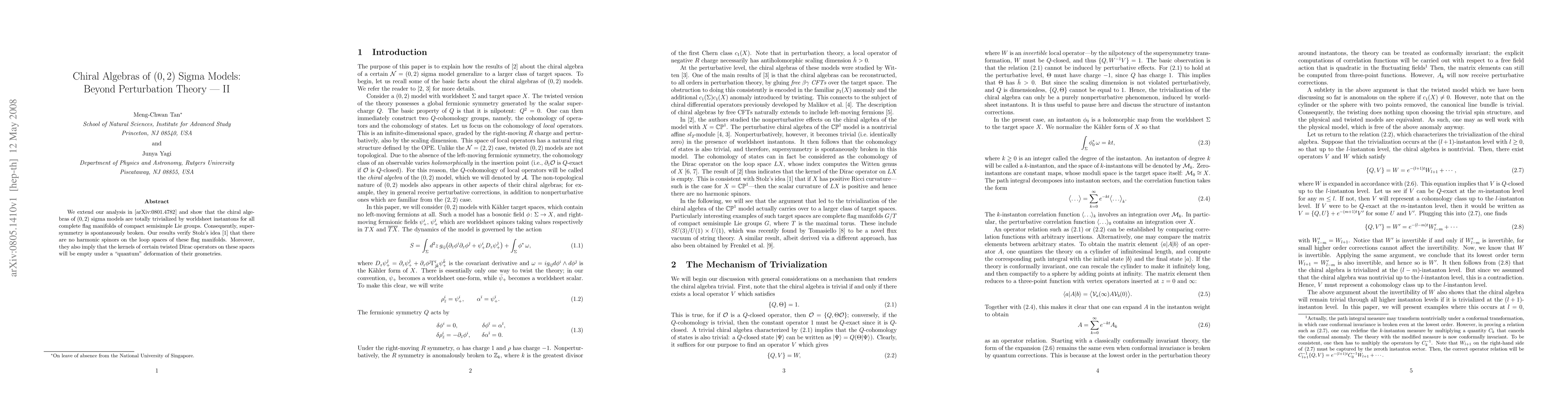 We extend our analysis in [arXiv:0801.4782] and show that the chiral algebras of (0,2) sigma models are totally trivialized by worldsheet instantons for all complete flag manifolds of compact semisimple Lie groups. Consequently, supersymmetry is spontaneously broken. Our results verify Stolz's idea that there are no harmonic spinors on the loop spaces of these flag manifolds. Moreover, they also imply that the kernels of certain twisted Dirac operators on these spaces will be empty under a "quantum" deformation of their geometries.
