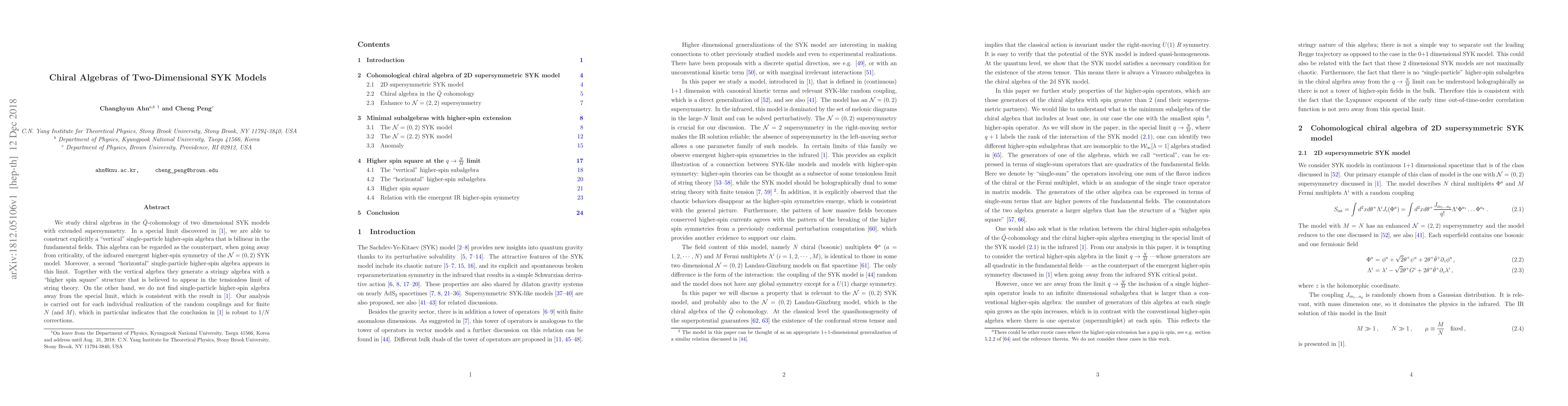 This paper investigates chiral algebras in the $\bar{Q}$-cohomology of two-dimensional SYK models with extended supersymmetry, revealing a "vertical" higher-spin algebra in a special limit and a "horizontal" counterpart, together forming a stringy algebra with a "higher spin square" structure. The findings confirm the robustness of results from arXiv:1805.09325 against $1/N$ corrections.