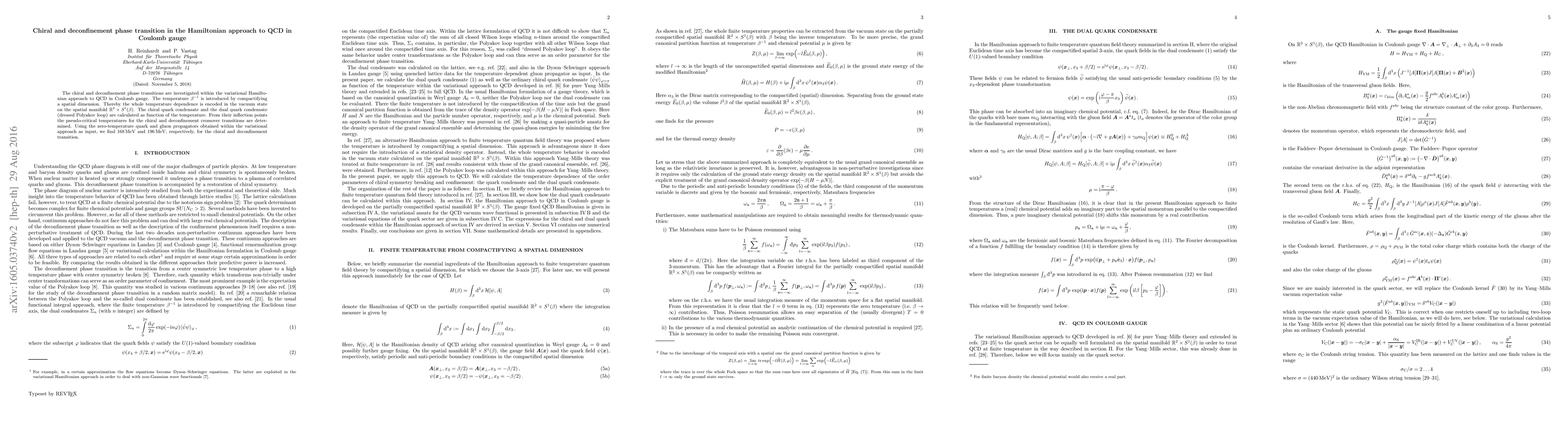 This paper investigates chiral and deconfinement phase transitions in QCD using a Hamiltonian approach in Coulomb gauge, determining pseudo-critical temperatures for these transitions at $168 \, \mathrm{MeV}$ and $196 \, \mathrm{MeV}$ respectively, by analyzing the temperature dependence encoded in the vacuum state.