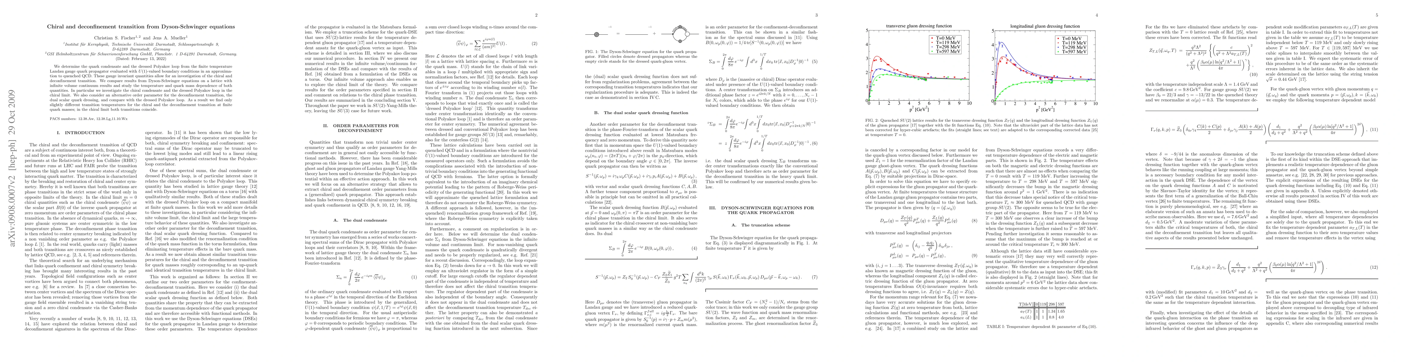 This paper investigates the chiral and deconfinement transitions in QCD using Dyson-Schwinger equations, finding that the chiral condensate and dressed Polyakov loop indicate similar transition temperatures, which coincide in the chiral limit. An alternative order parameter for deconfinement, the dual scalar quark dressing, is also considered.