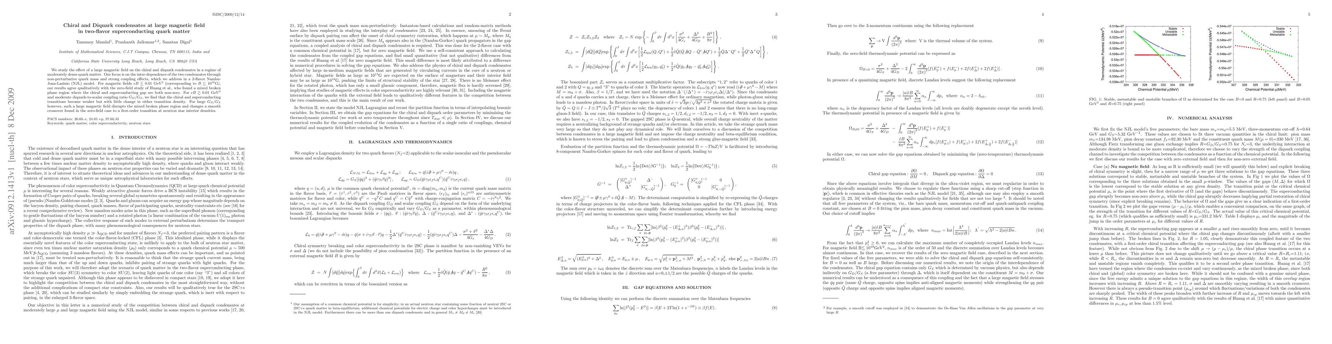 We study the effect of a large magnetic field on the chiral and diquark condensates in a regime of moderately dense quark matter. Our focus is on the inter-dependence of the two condensates through non-perturbative quark mass and strong coupling effects, which we address in a 2-flavor Nambu-Jona-Lasinio (NJL) model. For magnetic fields $eB\lesssim 0.01$ GeV$^2$ (corresponding to $B\lesssim 10^{18}$G), our results agree qualitatively with the zero-field study of Huang et al., who found a mixed broken phase region where the chiral and superconducting gap are both non-zero. For $eB\gtrsim 0.01$ GeV$^2$ and moderate diquark-to-scalar coupling ratio $G_D/G_S$, we find that the chiral and superconducting transitions become weaker but with little change in either transition density. For large $G_D/G_S$ however, such a large magnetic field disrupts the mixed broken phase region and changes a smooth crossover found in the zero-field case to a first-order transition at neutron star interior densities.