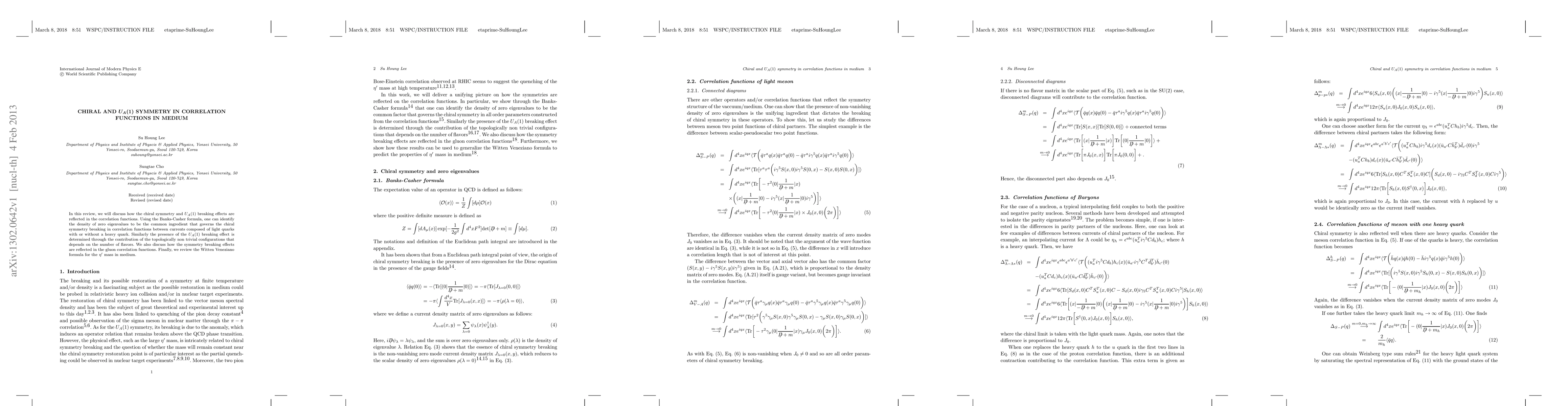 This paper reviews how chiral symmetry and U_A(1) breaking influence correlation functions, identifying the density of zero eigenvalues as a key factor in chiral symmetry breaking. It also examines the role of topologically non-trivial configurations in U_A(1) breaking and discusses the implications for gluon correlation functions, concluding with a review of the Witten Veneziano formula for the eta' mass in medium.