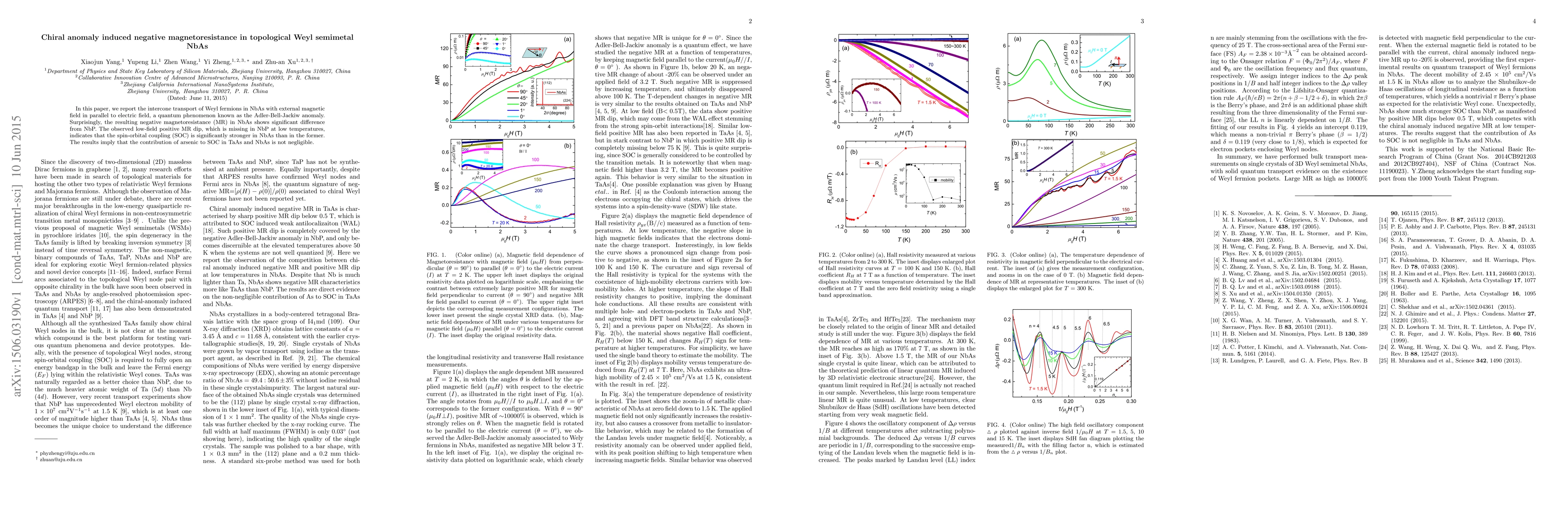 This paper investigates the chiral anomaly in NbAs, revealing a negative magnetoresistance due to Weyl fermions' transport, contrasting with NbP's behavior. The stronger spin-orbital coupling in NbAs suggests a significant contribution from arsenic, highlighting its role in topological properties.