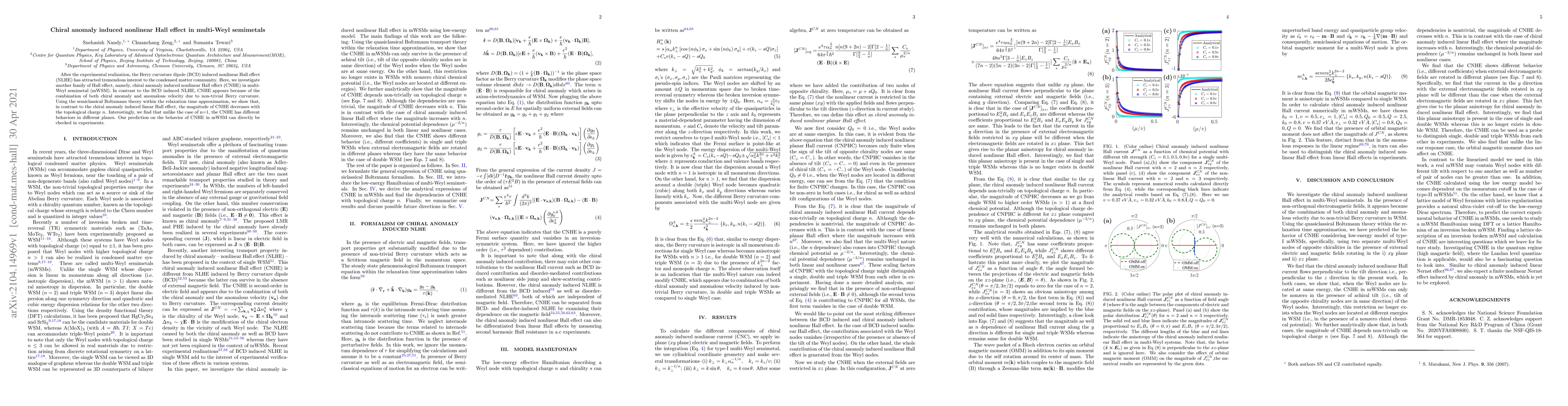 This paper investigates the chiral anomaly induced nonlinear Hall effect (CNHE) in multi-Weyl semimetals (mWSM), contrasting it with the Berry curvature dipole-induced nonlinear Hall effect. The study reveals that CNHE diminishes with increasing topological charge n and exhibits different behaviors in different planes, offering a potential experimental test for these findings.