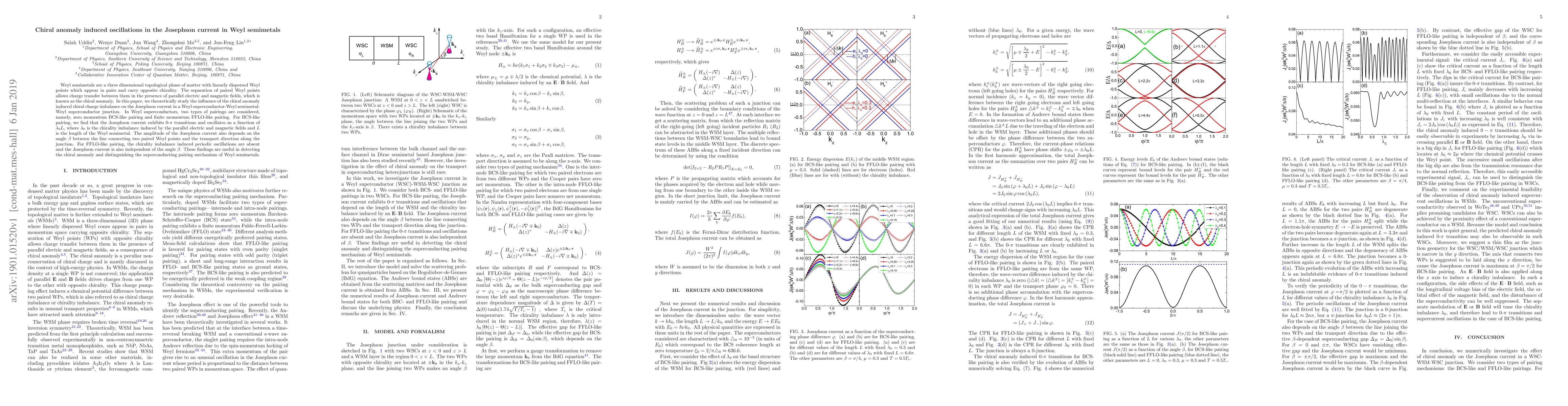 This paper investigates how the chiral anomaly affects the Josephson current in a Weyl semimetal junction, finding $0$-$\pi$ transitions and oscillations for BCS-like pairing, while FFLO-like pairing lacks such oscillations, aiding in identifying the chiral anomaly and superconducting pairing mechanisms.