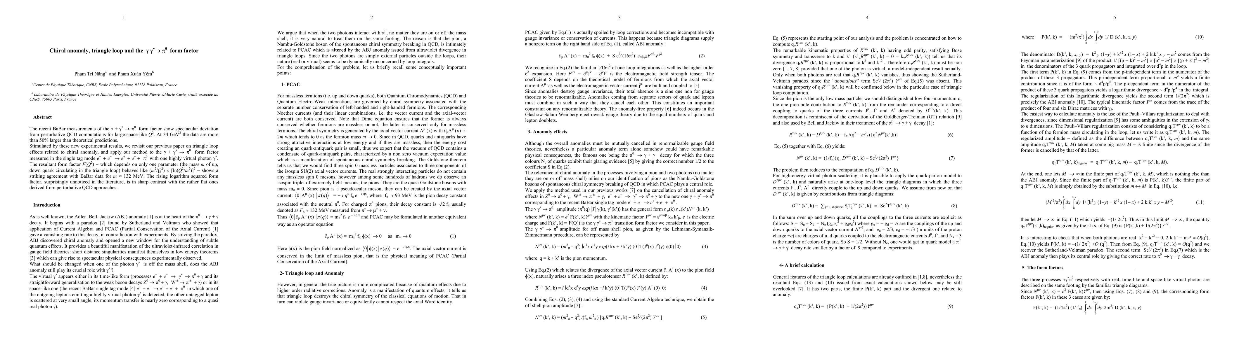 This paper revisits triangle loop effects related to chiral anomaly to explain the $\gamma\gamma^{*}\to \pi^{0}$ form factor, showing remarkable agreement with BaBar measurements at large $Q^{2}$, with a form factor rising as $(\frac{m^{2}}{Q^{2}})\times (\ln(Q^{2}/m^{2}))^{2}$ for $m \approx 132\,\rm MeV$. This contrasts sharply with flat predictions from perturbative QCD.